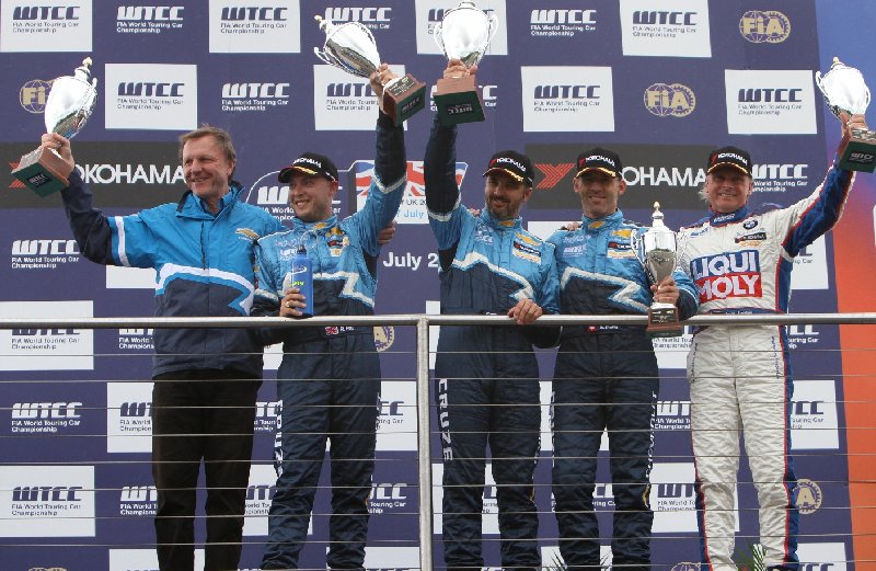 Závody šampionátu WTCC se jezdí dvoukolově, v Doningtonu v obou zvítězil Yvan Muller před lídrem seriálu Huffem. Menu po třetím místě v prvním závodě umožnil vystoupit na stupně vítězů konkurenčnímu pilotu BMW, když dojel na pátém místě. V obou závodech přerušovaně pršelo, trať proto byla na některých úsecích vlhká, což způsobilo závodníkům mnoho problémů. Nevyhnuli se jim ani Muller a Huff, kteří měli kontakt na začátku 2. závodu. Rozhodčí ho zkoumali a rozhodli, že to byl běžný incident. Nakonec nezabránil Cruzům v závodě zvítězit. Chevrolet získal maximum bodů do hodnocení výrobců a zvýšil svůj náskok v tomto hodnocení před závodem WTCC v Německu, posledním před letní přestávkou.