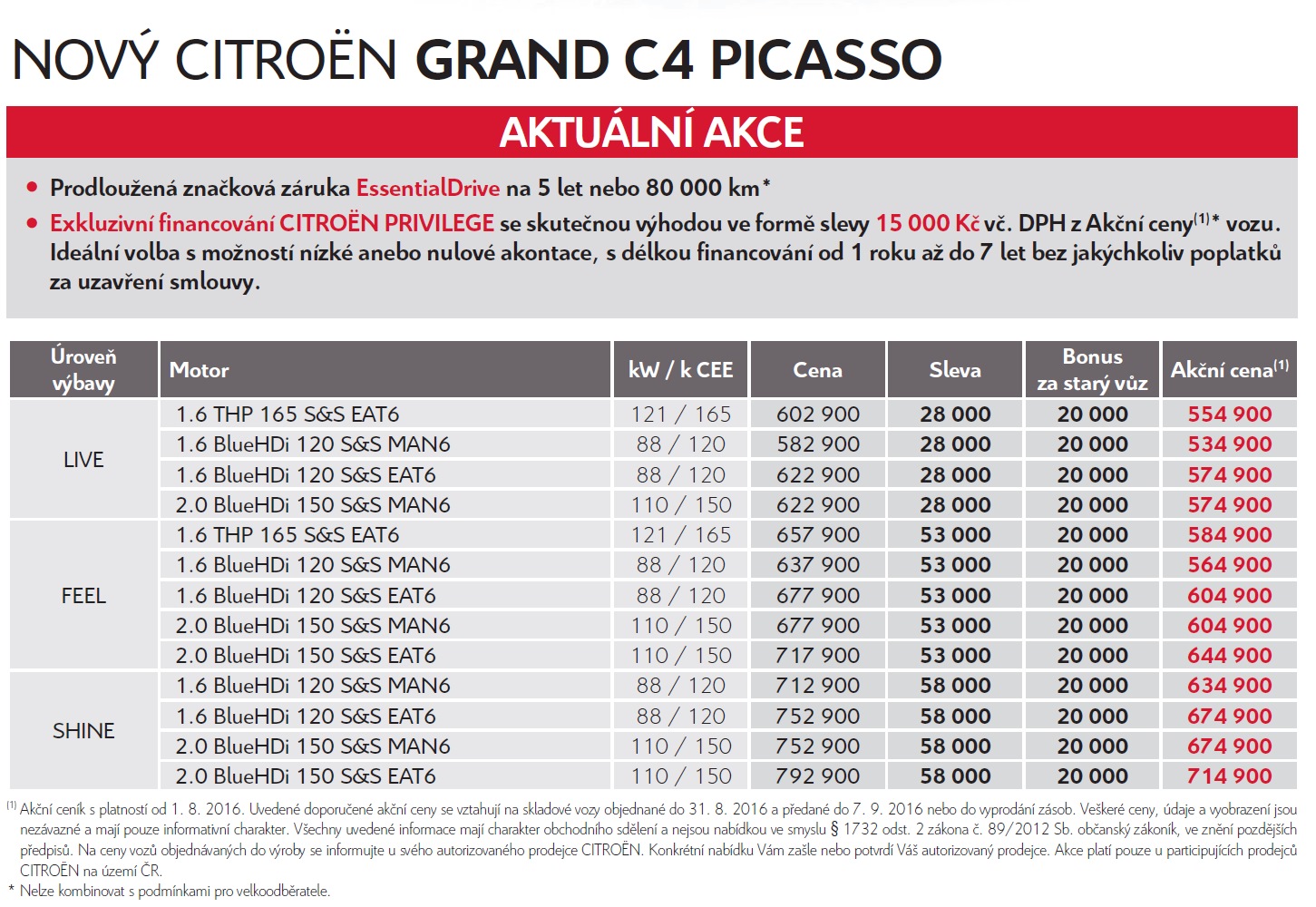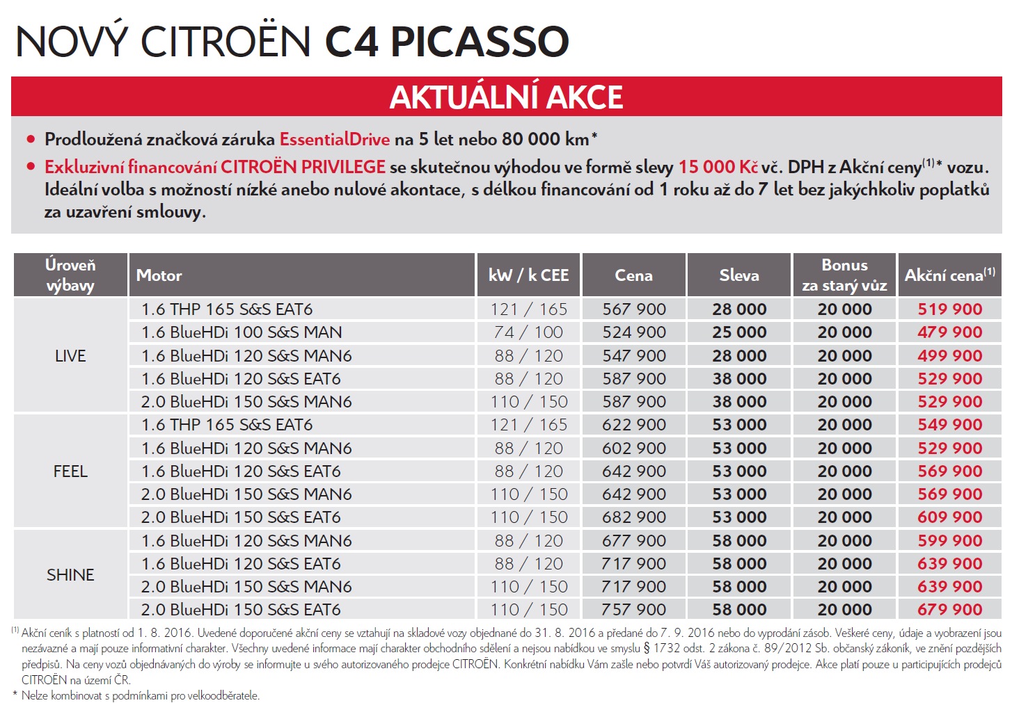 Ceny začínají na úrovni 479 900 Kč pro C4 Picasso LIVE 1.6 BlueHDi 100 S&S MAN a 534 900 Kč pro Grand C4 Picasso LIVE 1.6 BlueHDi 120 S&S MAN6.