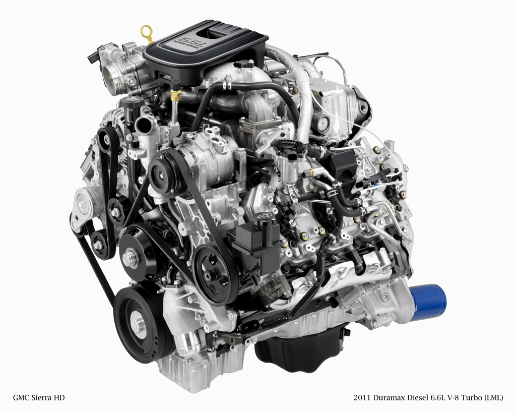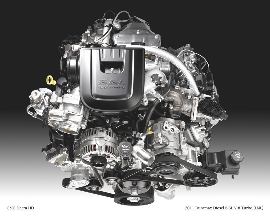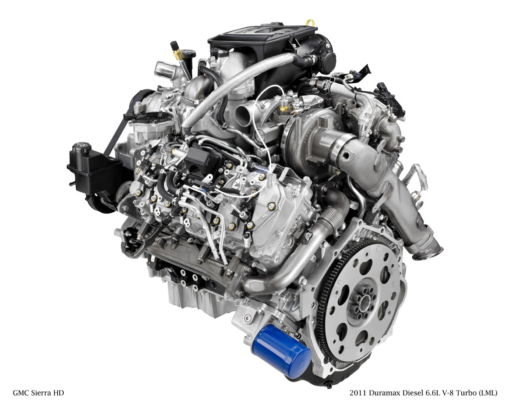 Jediným obrovským turbodmychadlem přeplňovaný osmiválec Duramax s objemem 6599 ccm a vstřikem Common rail (2000 bar, piezovstřikovače) je určen pro rovněž přepracované modely Chevrolet Silverado Heavy Duty a GMC Sierra Heavy Duty modelového roku 2011.Maximální výkon motoru je 296 kW při pouhých 3000/min a točivý moment vrcholí zdrcující hodnotou 1037 N.m. při 1600/min! Jeho „lokomotivní“ charakteristika ještě více vynikne při porovnání s šestilitrovým dvanáctiválcem 6,0 TDI v Audi Q7, který sice dosahuje mnohem vyššího výkonu ve špičce- 368 kW, ale v otáčkách o 750/min vyšších. Navíc V12 TDI od Audi má dokonce o 37 N.m. nižší točivý moment, a to přesto že má teoretickou výhodu čtyř přeplňovaných válců navíc...