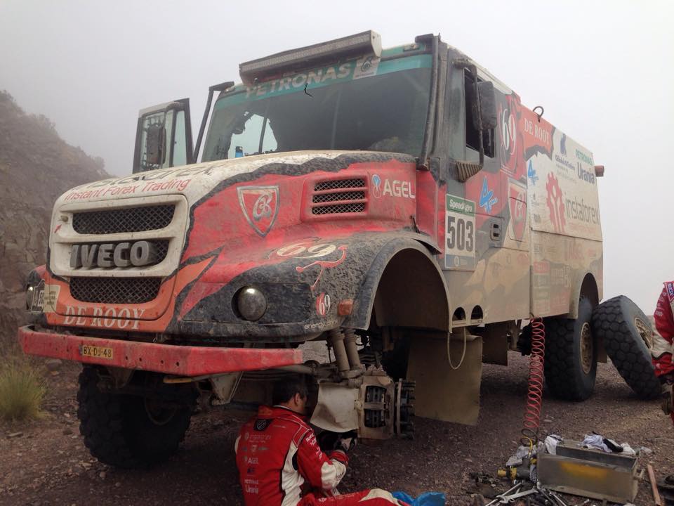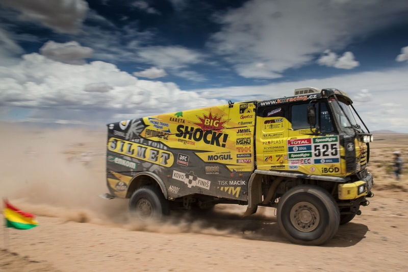 Martin Kolomý začal fantasticky, když od prvních kilometrů udával tempo mezi kamiony. V polovině trati pak ztratil na vítěze etapy Rusa Nikolajeva jedoucího na Kamazu a obsadil další pódiové umístění. „Dneska jsme si etapu opravdu užili. Už to začalo fantastickou atmosférou po příjezdu do Bolívie, která nás zdravě nabudila. Před startem se nám podařilo vyměnit vadné boostové čidlo, takže motor šlapal jako hodinky. Druhé místo je perfektní a celkové umístění je pořád reálné. Vždyť je před námi ještě více jak půlka Dakaru,“ uvedl v bivaku Martin Kolomý, který se v celkové klasifikaci posunul na šesté místo.