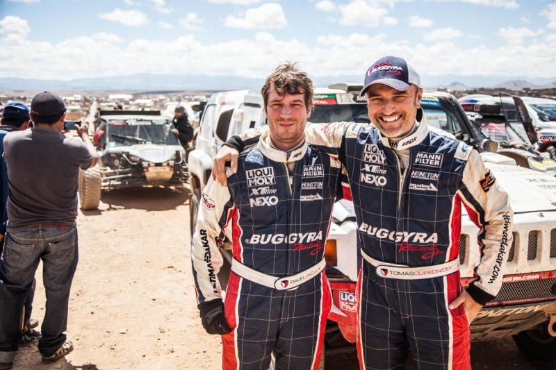 Velmi povedenou etapu má za sebou také Jaroslav Valtr, který do cíle dojel na desátém místě. „Tahle etapa mi sedla, bohužel jsme zase startovali až z čtyřiadvacátého místa, takže jsme jeli ve vláčku a hodně v prachu, a to se špatně předjíždí. Bylo to hodně rizikový, hlavně v horách po úzkých cestách s velkými srázy a propastmi, takže jsme museli jet opatrně. Každopádně jsem rád, že jsem mohl ukázat, že auto jede. Zítra budeme moc startovat konečně vpředu,“ radoval se Jarda, který tak doplatil na zrušený prolog a od začátku soutěže startuje v hloubi pole, což posádce přináší nemalé problém.