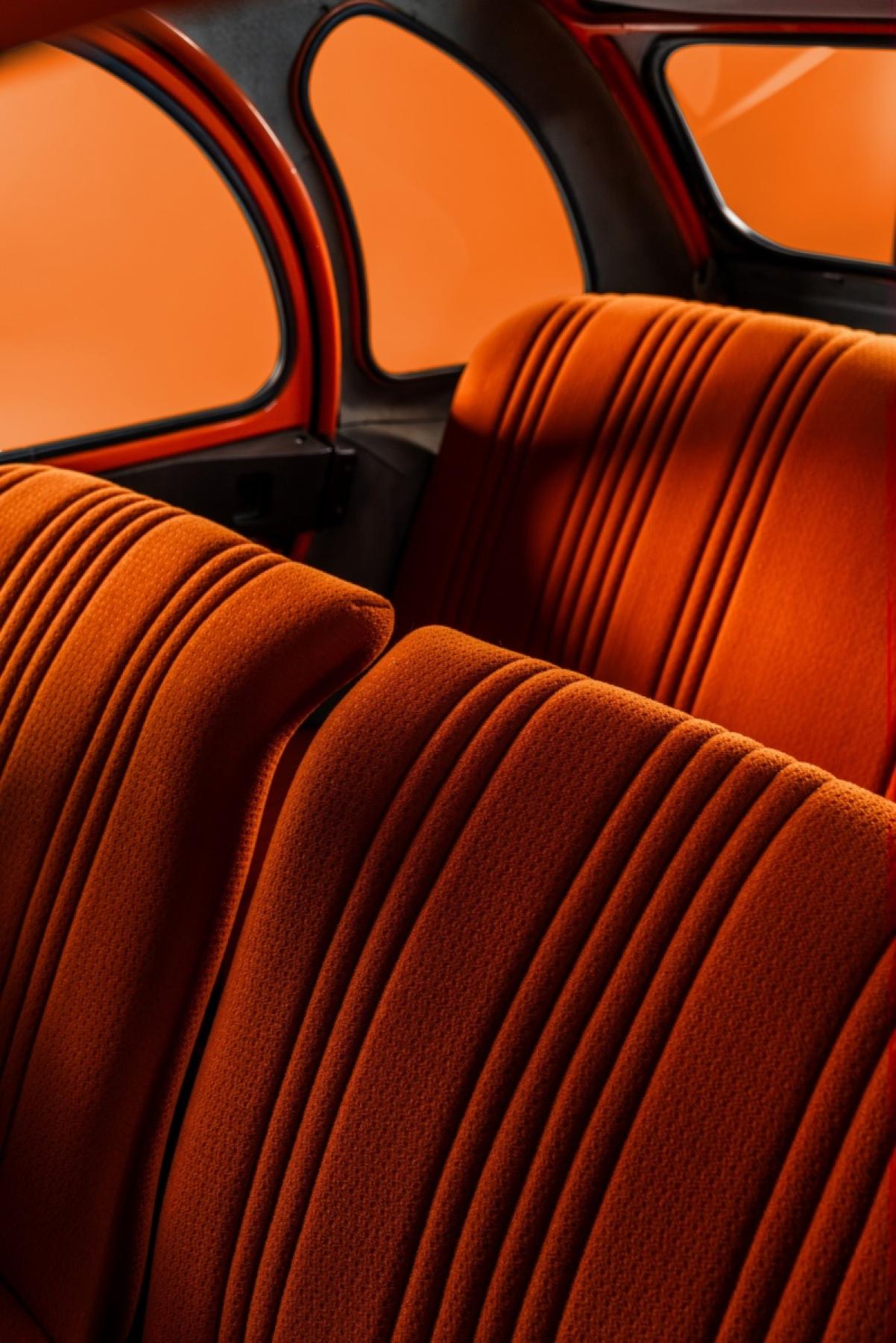 Model 2 CV Spot zaujme svou jedinečnou osobností. Každý jeho detail byl navržen tak, aby vytvořil harmonický celek: dvoubarevná karoserie v odstínech oranžová Ténéré a bílá Meije, oranžovo-bílá pruhovaná stahovací střecha nad předními sedadly, výplně dveří se stejným dvoubarevným motivem, kryty kol z nerezové oceli převzaté z modelu Dyane, čalounění z látky Orange Vénitien typu Jersey....