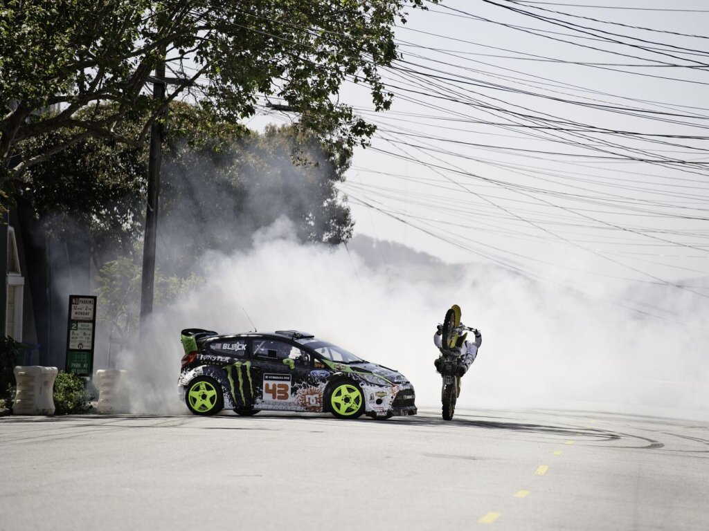 Závodník a podnikatel Ken Block se v pátém dílu své videosérie Gymkhana vydal za volantem upraveného Fordu Fiesta do ulic San Franciska, kde předvádí jeho oblíbené drifty, otočky a také skoky. Novinkou je skok ve driftu s dopadem na vrchol kopce.