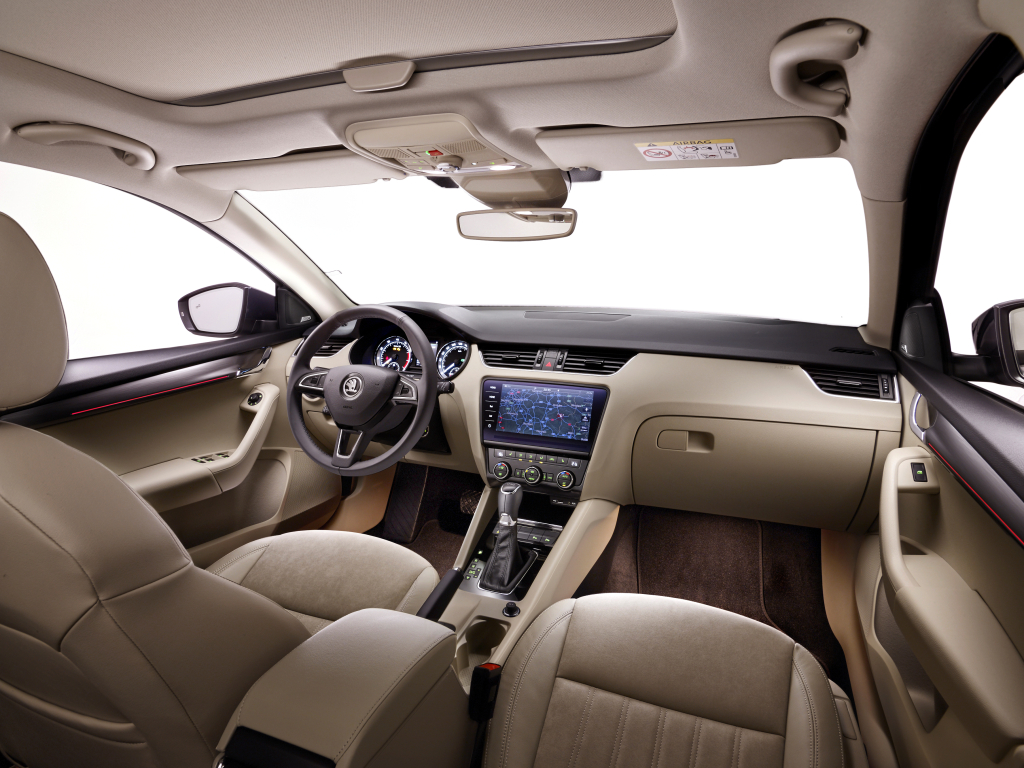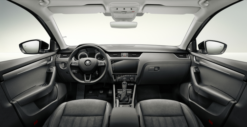 Interiér přepracovaného provedení modelu ŠKODA OCTAVIA se vyznačuje mimořádně velkorysou nabídkou prostoru a elegancí. Horizontálně orientovaný design působí vzdušně, linie, plochy a obestavěný prostor působí geometricky jasným dojmem. Velké a jasně čitelné kruhové přístroje umístěné v přístrojovém štítu působí díky novému grafickému provedení propracovaněji.