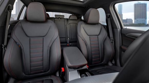 Specifikace každé z modelových variant xLine, M Sport X a M Sport zahrnuje exkluzivní designové prvky, které dávají interiéru nového BMW X4 jedinečný charakter. Sportovní sedadla s čalouněním v kombinaci látka/kůže