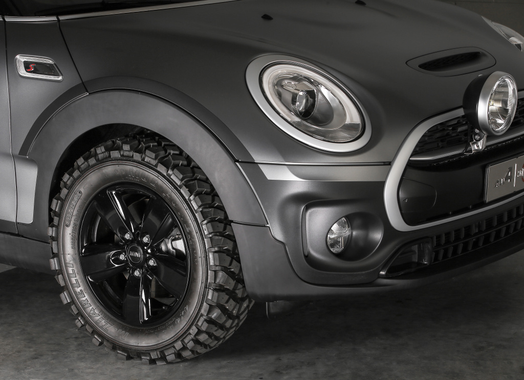 Tak, jako má BMW R NineT Scrambler výše umístěná řídítka, zvýšila se také stavba MINI Clubman All4 Scrambler, která zajistí uvolněnější a všestrannější jízdu. Oblíbený Scrambler vystavuje na odiv terénní pneumatiky. Proto jimi byla vybavena i „drsná“ verze nového MINI. Jsou synonymem pro projíždění krajinou po prašných cestách, po nichž mohou nenuceně a bezpečně jezdit pouze odpovídajícím způsobem vybavená vozidla.