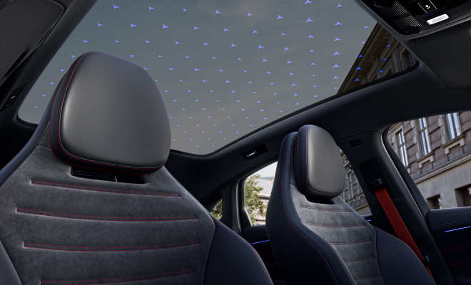 Panoramatická střecha SKY CONTROL se stmívatelným sklem a 162 osvětlenými hvězdami