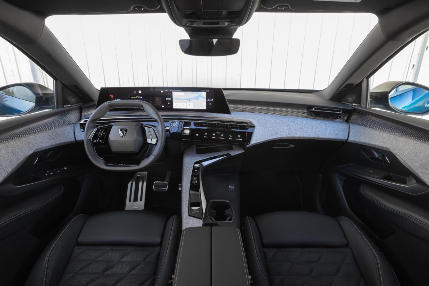 Týmy Peugeot se rozhodly spojit dva ze tří základních prvků i-Cockpit®: vyvýšený přístrojový panel a velký centrální dotykový displej. Ty jsou nyní zabudovány do zakřivené panoramatické obrazovky tvořené jediným jednadvacetipalcovým panelem s vysokým rozlišením, který sahá od levého konce palubní desky až ke středové konzole. Tato panoramatická obrazovka vypadá, jako by se vznášela nad palubní deskou. Plovoucí efekt podtrhuje speciální LED ambientní osvětlení pod displejem.