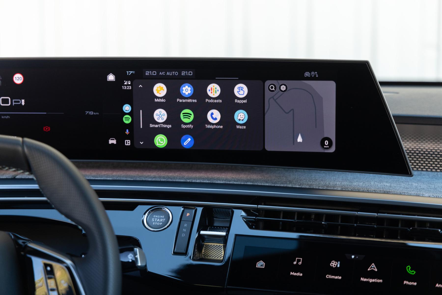 Tato 21palcová panoramatická obrazovka, jejíž umístění zaručuje optimální ergonomii, je mírně zakřivená směrem k řidiči a zároveň zůstává dokonale přístupná spolujezdci na předním sedadle. Digitální obrazovka výjimečných rozměrů a kvality v sobě spojuje dvě klíčové funkce systému Peugeot i-Cockpit®: