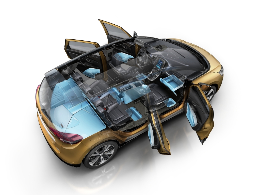 Systém One Touch Folding převzatý z Nového Espace umožňuje jediným pohybem sklopit zadní sedadla, čímž se dosáhne rovné podlahy. Nový Scénic je jediným vozem v tomto segmentu, ve kterém je možné ovladač aktivovat na dvou různých místech: v zavazadlovém prostoru nebo pomocí systému R-LINK 2. Scénic je rovněž jediným vozem v tomto segmentu, který nabízí posuvnou středovou konzoli s velkým objemem (13 litrů), tj. až čtyřnásobek objemu nabízeného konkurencí.