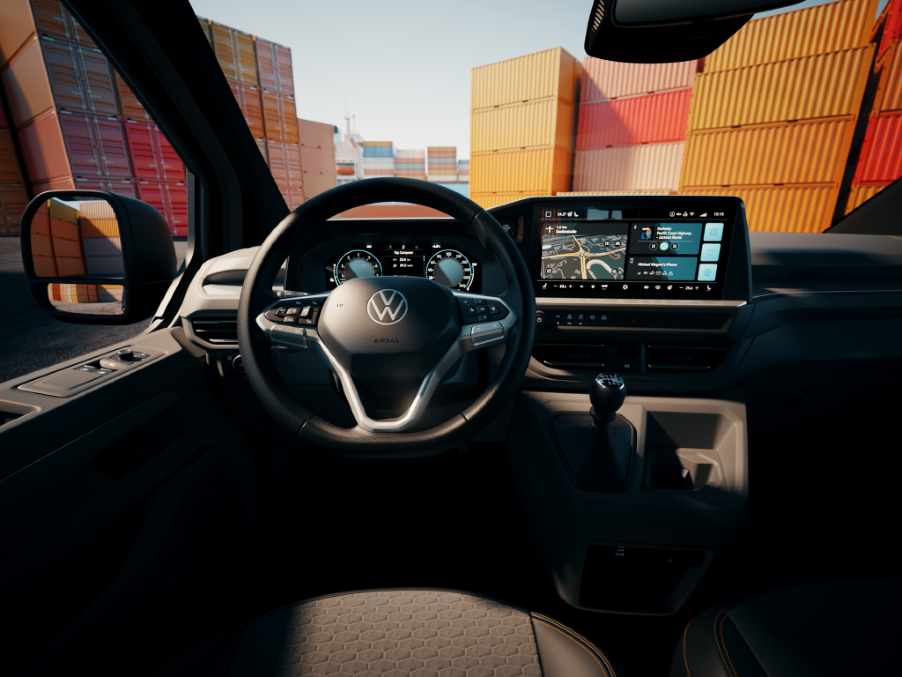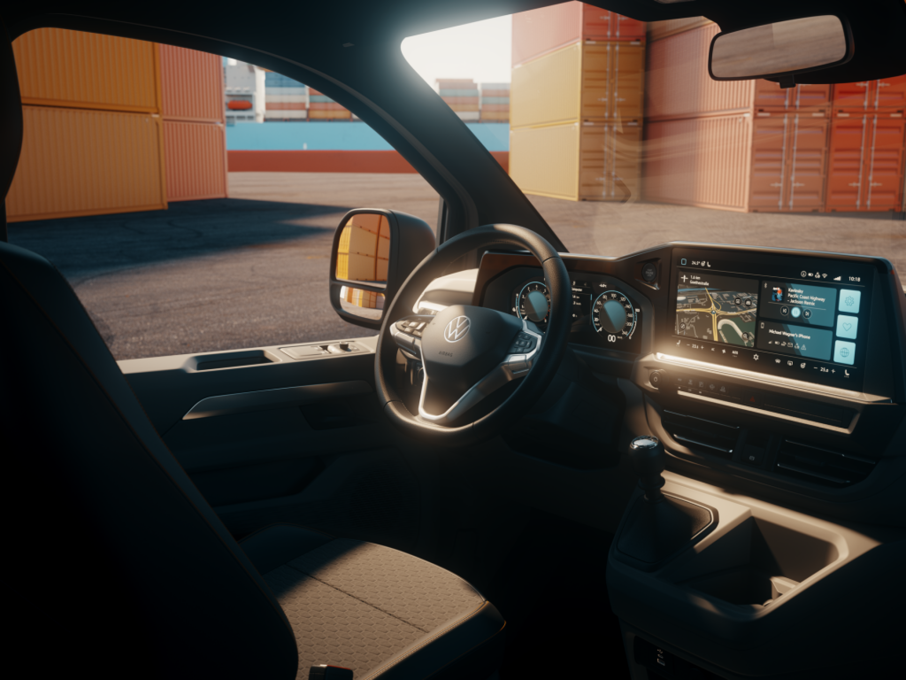 Kromě nových LED světlometů a zadních sdružených LED svítilen bude sériová výbava nového modelu Transporter zahrnovat mimo jiné také elektronickou parkovací brzdu včetně funkce Auto Hold, 12“ panel digitálních sdružených přístrojů (Digital Cockpit), informační a zábavní systém (včetně DAB+, Apple CarPlay, Android Auto, on-line služeb a 13“ dotykového displeje), multifunkční volant, dešťový snímač, asistent pro jízdu v jízdním pruhu Lane Assist, autonomní nouzové brzdění Front Assist a dynamické zobrazování dopravních značek s upozorněním na jízdu v protisměru.