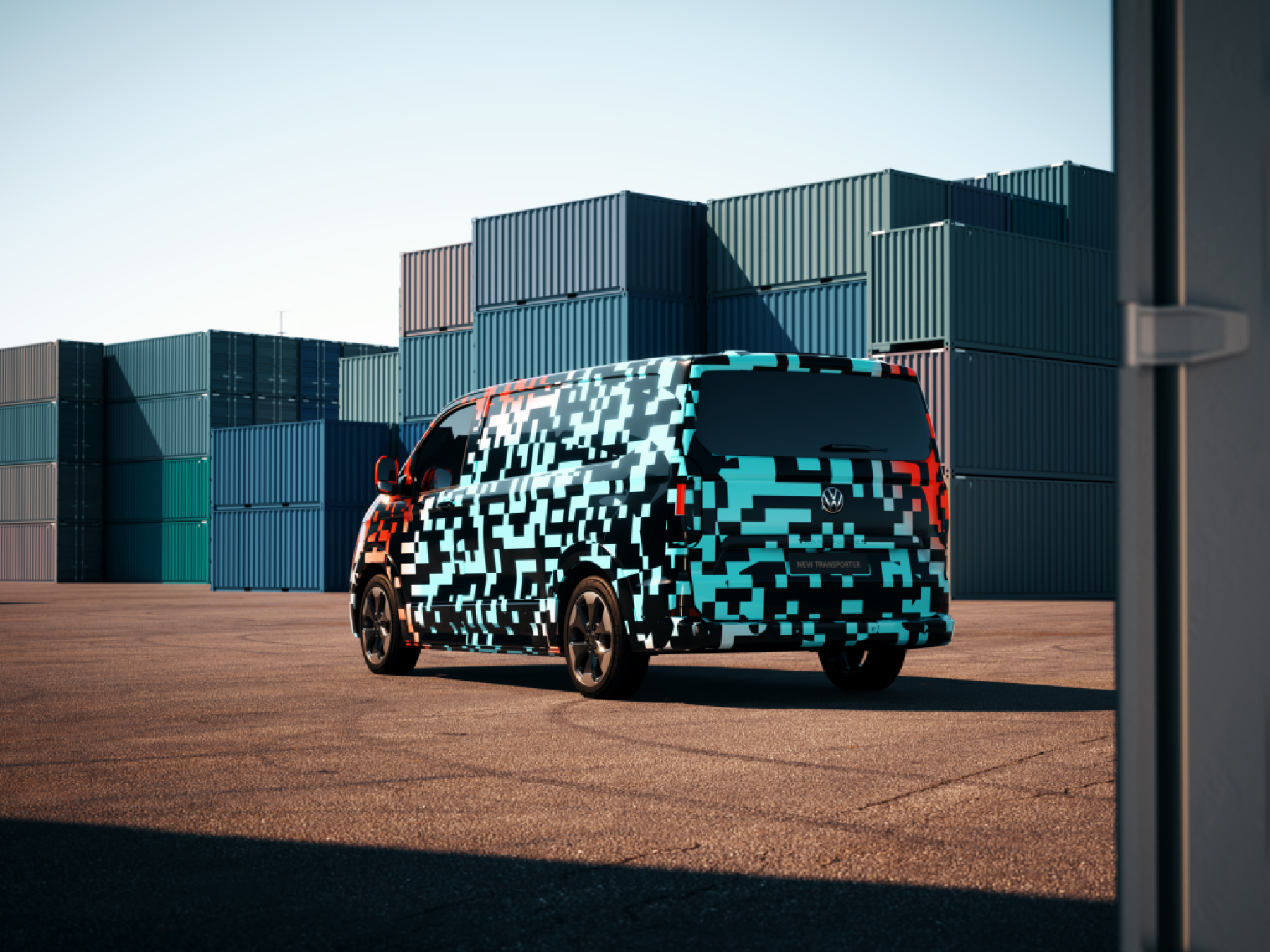 Nový Transporter s čistým designem přídě a zádě je snadno rozpoznatelný jako další člen modelové řady značky Volkswagen Užitkové vozy. Sériově dodávané LED světlomety patří mezi zásadní prvky vysoce aerodynamického designu vozu. Součástí sériové výbavy jsou rovněž zadní LED světla. Stejně jako předchůdce lze i nové modely Transporter nakonfigurovat buď se zadními výklopnými dveřmi, nebo s křídlovými dveřmi s velkým úhlem otevření.