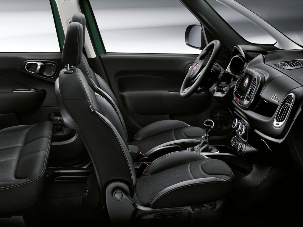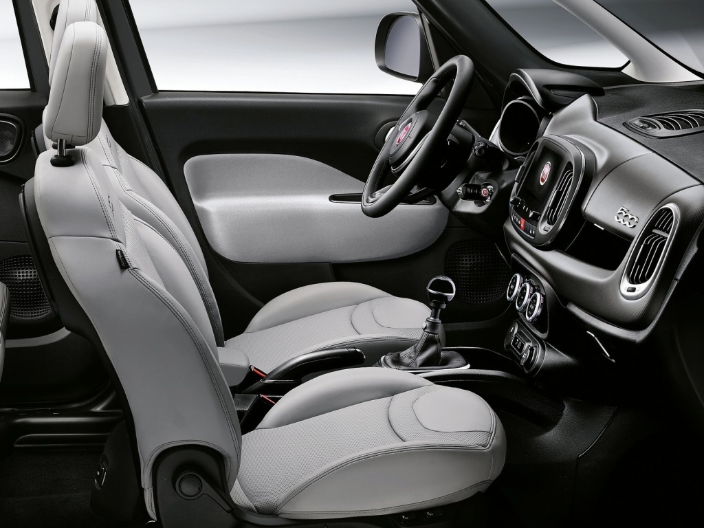 Zatímco horní část přístrojového panelu disponuje svěžestí a novou osobitostí, spodní je charakteristická pohodlnými a velkými úložnými prostory a zavádí nové komfortní prvky, jakým je například středová loketní opěrka. Volič převodovky byl přepracovaný a nyní je umístěný výše pro lepší ergonomii a je doplněn logem 500. Každá verze řady 500L má svou vlastní osobitost. Výbava Popstar vyjadřuje mladistvou, funkční a praktickou stránku modelu s čelní částí přístrojového panelu v barvě karoserie, černými textilními sedadly, džínovou středovou částí sedadel a bílými vinylovými vložkami s logem 500. Obložení dveří je vylepšeno měkkou černou textilní loketní opěrkou. Přístrojový panel je zbarvený v odstínu karoserie. Stupeň výbavy Lounge vyjadřuje modernost a eleganci, o čemž svědčí i exkluzivní přístrojový panel se 7palcovou dotykovou obrazovkou systému UconnectTM HD Live ve standardu a chromované prvky. Zákazníci mohou volit chladnější nebo teplejší odstíny, ve všech případech s textilii Diamond-Wave, dvojitým prošíváním a černými vinylovými opěrkami hlavy a loketní opěrkami. Přístrojový panel je čalouněný technickou tkaninou v barvě sedadel. Verze Cross vyjadřuje sportovní povahu a ducha dobrodružství: 7palcový displej, černé interiéry, textilní sedadla a titanové vinylové vložkami s vygravírovaným logem 500. Šedá nebo černá sedadla jsou k dispozici jako pro stupně výbav Urban a Wagon Lounge a Cross. Prostornost interiéru je na vrcholu třídy díky velkorysé délce prostoru pro cestující. Zavazadlový prostor se zadními sedadly v přední poloze dosahuje u verzí Urban a Cross objemu 455 litrů, v případě verze Wagon pak 638 litrů (416 litrů v sedmisedadlovém uspořádání). Se sklopenými sedadly vzroste kapacita zavazadlového prostoru verzí Urban a Cross na 1480 litrů, v případě modelu Wagon pak na 1784 litrů.