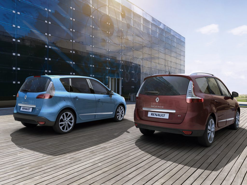 Populární MPV od Renaultu prošlo omlazovací kúrou a na českém trhu se objeví v průběhu ledna 2012. Příď dostala nové světlomety a celkově serióznější tvary. Nový je rovněž nárazník, který má více lakovaných ploch a integrované diody pro denní svícení hned vedle mlhovek. Boky karoserie nově zdobí chromové lišty. Záď se rovněž dočkala přepracovaných koncových světel (tvar zůstal, avšak grafika je nová). Scénic i Grand Scénic se dočkají širší nabídky litých kol a nová budou i barevná provedení v podobě červené Grenat nebo modré barvy Majorelle.