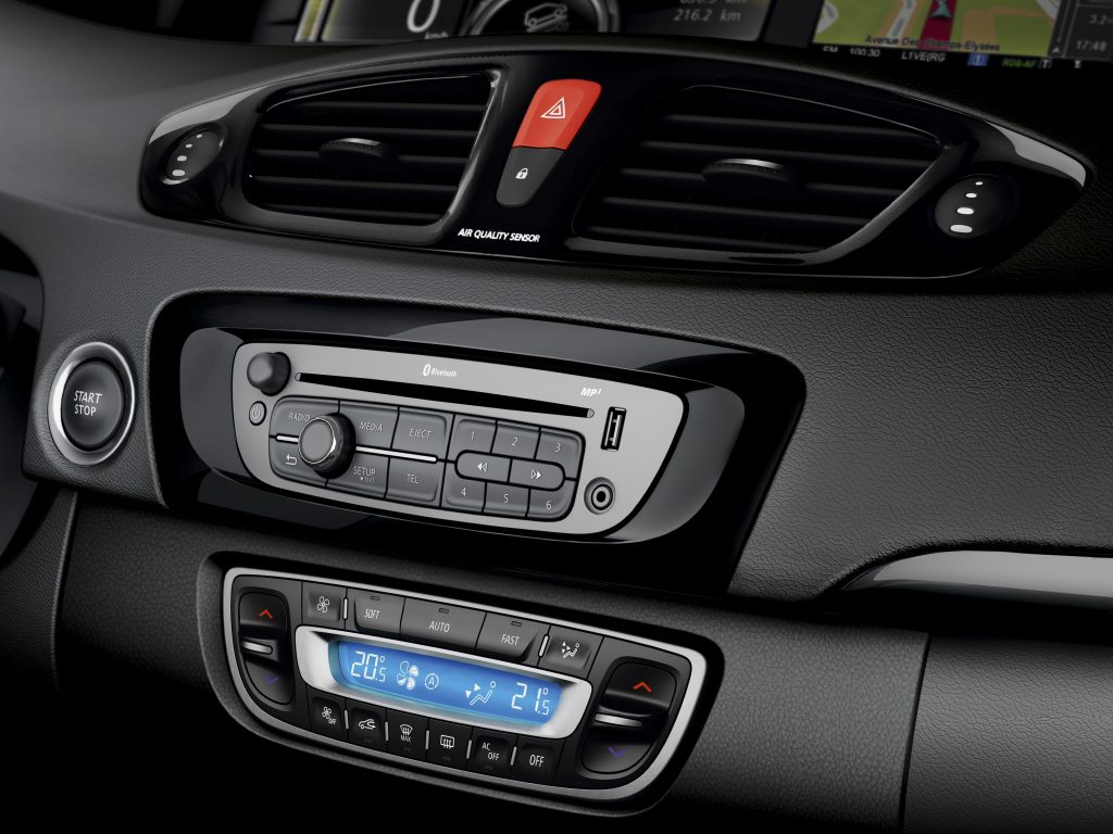 Standardní výbavy se u modernizovaných Scéniců rozšiřuje o parkovací brzdu s funkcí Hill Holder. Bezpečnostní výbava dostane systém Renault Visio, který pomocí kamery hlídá vybočení z jízdního pruhu a upozorní na něj akustickým signálem. Kamera systému Visio navíc monitoruje světla protijedoucích vozů či veřejné osvětlení a systém automaticky přepíná mezi dálkovými a tlumenými světly.