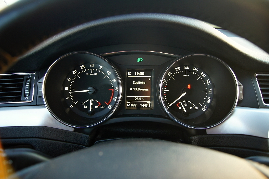 Řidič se v Superbu může cítit druhořadě, prostoru za volantem má méně než v Octavii! Je limitován kombinací úzké karoserie a širokého středového panelu. Interiér přes své stáří působí kvalitně a uchovává si klubovou atmosféru. Zub času se nejvíce projevil na středovém panelu, který ve srovnání se současnou generací působí jako z minulého století. Dokonce i oproti Octavii je displej multimediálního Columbusu menší, grafika horší a ovládání méně logické. Někomu může vadit absence asistenčních systémů.