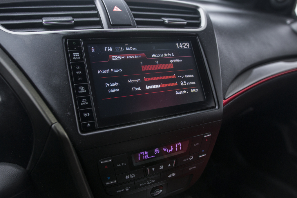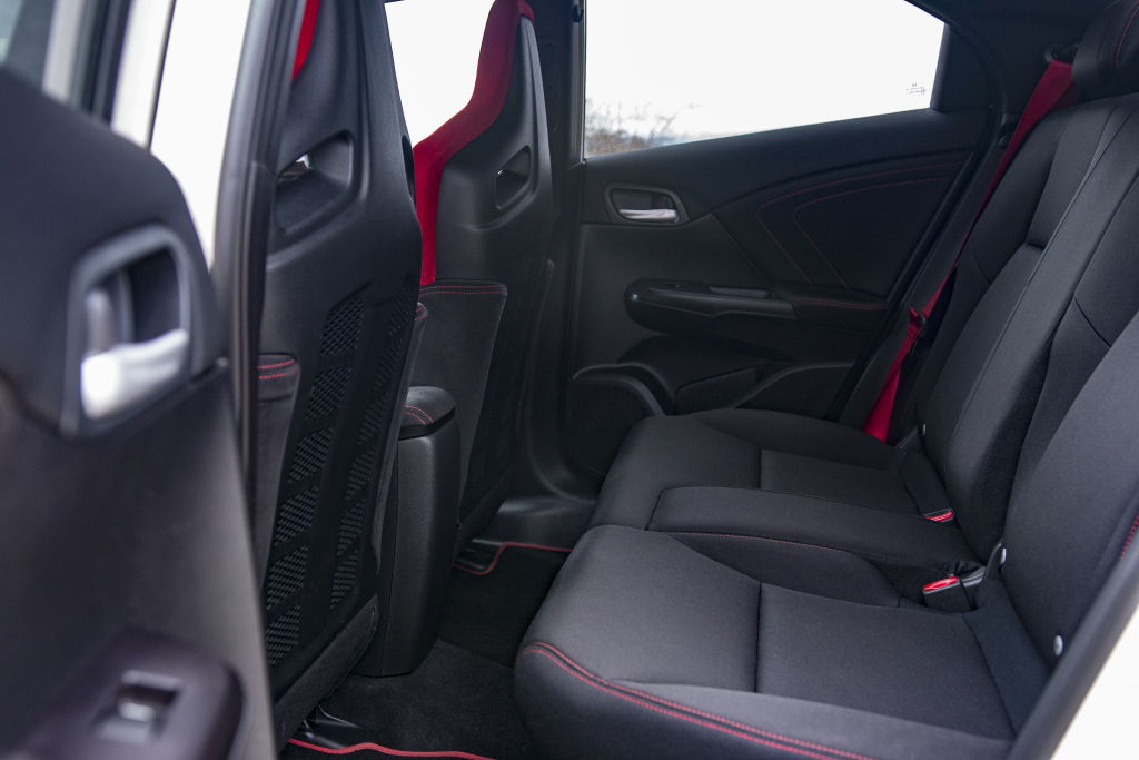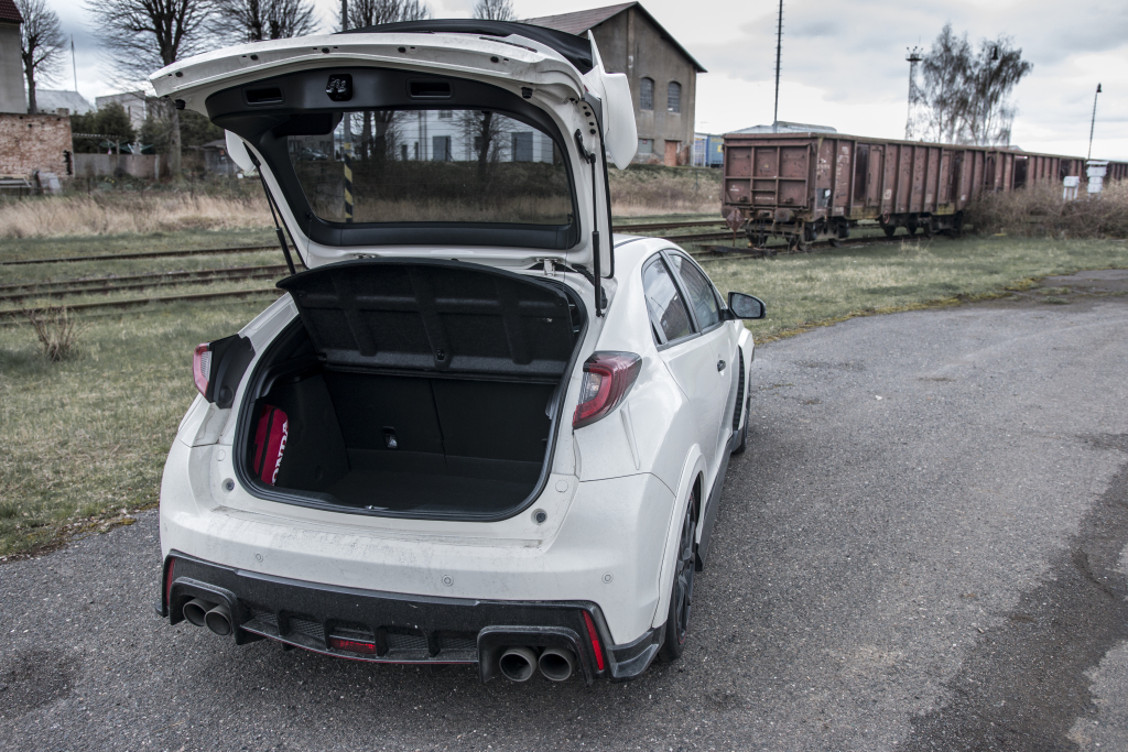 Naprosto dokonalá je totiž poloha extrémně malé řadicí páky s kovovou hlavicí, úžasné je seskupení pedálů přímo vybízející brzdění technikou „heel-and-toe“ a samozřejmostí je i skvělá poloha, tvar a velikost volantu. S potěšením tedy konstatuji, že pokud má nové CTR tu a tam pár drobných chyb, nikdy nejsou takového rázu, aby vám překážely v opravdu rychlé jízdě. Navíc se najde i pár drobností, které rozhodně potěší a díky kterým si s dravou Hondou lze každodenní život představit. Tak zaprvé. Naprosto rekordní hodnotou je u nového civicu objem zavazadlového prostoru, který i v případě nabroušeného Type R skýtá 475 litrů! Za druhé je tu zcela konvenční zadní řada sedadel, díky níž tato zběsilost vcelku pohodlně (bavíme se o prostoru v oblasti hlavy a kolen) odveze 4 dospělé cestující. A v neposlední řadě nechybí ani unikátní patent Magic Seats, pomocí něhož si z ostré hondy uděláte doslova domácí stěhovák. Vyrazit i na delší výlet proto není problém.