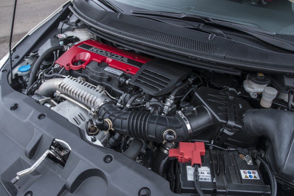 Srdnatě se sbírá již od 1500 otáček, ve 2500ot./min táhne maximem točivého momentu a v průběhu následných 2500 otáček exponenciálně ožívá, abyste si jej od 5000 do 7000 otáček vychutnali ve vší parádě. Jen pozor na omezovač (7000!!), ke kterému motor na nižších kvaltech vyletí rychleji, než ruka pomalejšího řidiče k řadicí páce ve snaze přeřadit. Dvoulitrový turbomotor totiž trpí neskutečnou chutí po otáčkách a zároveň se na samotném konci odmění i sladkou výkonovou špičkou. Úžasný je také zvukový doprovod, kdy zhruba ve 4000 otáčkách dokonale připomíná staré, vysokootáčkové bestie (slyšíte úplně všechno – motor, výfuk, sání a dokonce i každý kamínek, jež vás při srážce s podběhem skoro až štípne do obličeje). Nový motor je jednoduše fenomenálním spojením starých atmosférických hond se současnou érou turbomotorů a zároveň tím nejlepším, co si můžete v moderním „hothatchi“ pořídit.