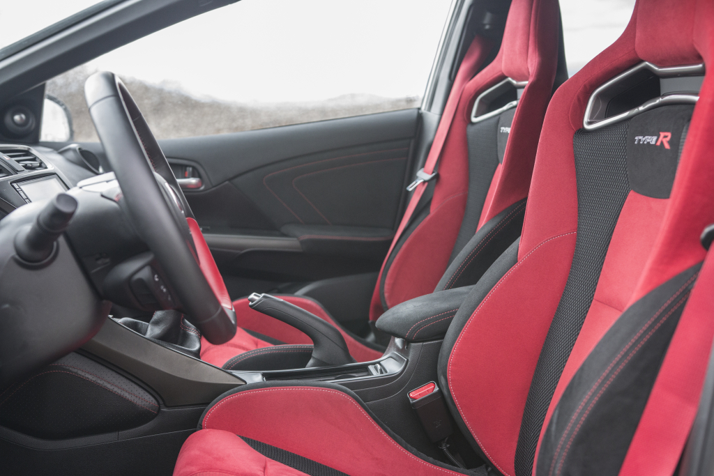 Prim hrají přední sedadla. Rudé skořepiny s obrovskými bočnicemi totiž nejen skvěle podrží tělo, ale později se také dozvíte, že naprosto fenomenálně přenášejí k řidičově zadnici obrovské množství informací. Jen je dobré dávat si při nastupování pozor na mužskou pýchu, protože boční opora stehen měří dobrých 12 centimetrů. Au!