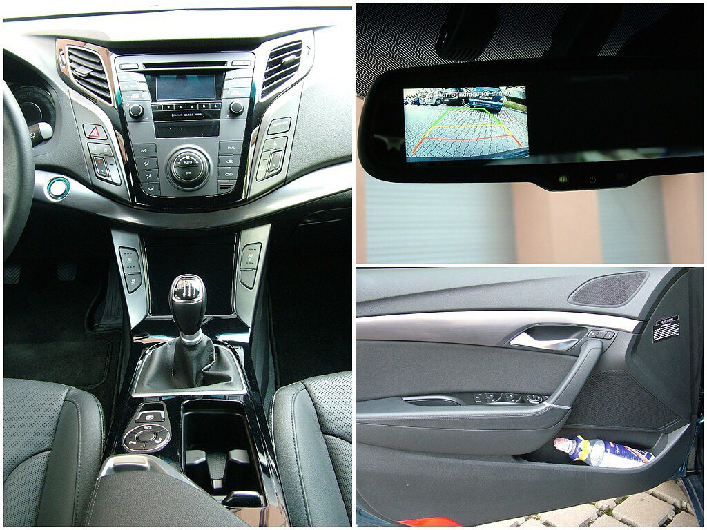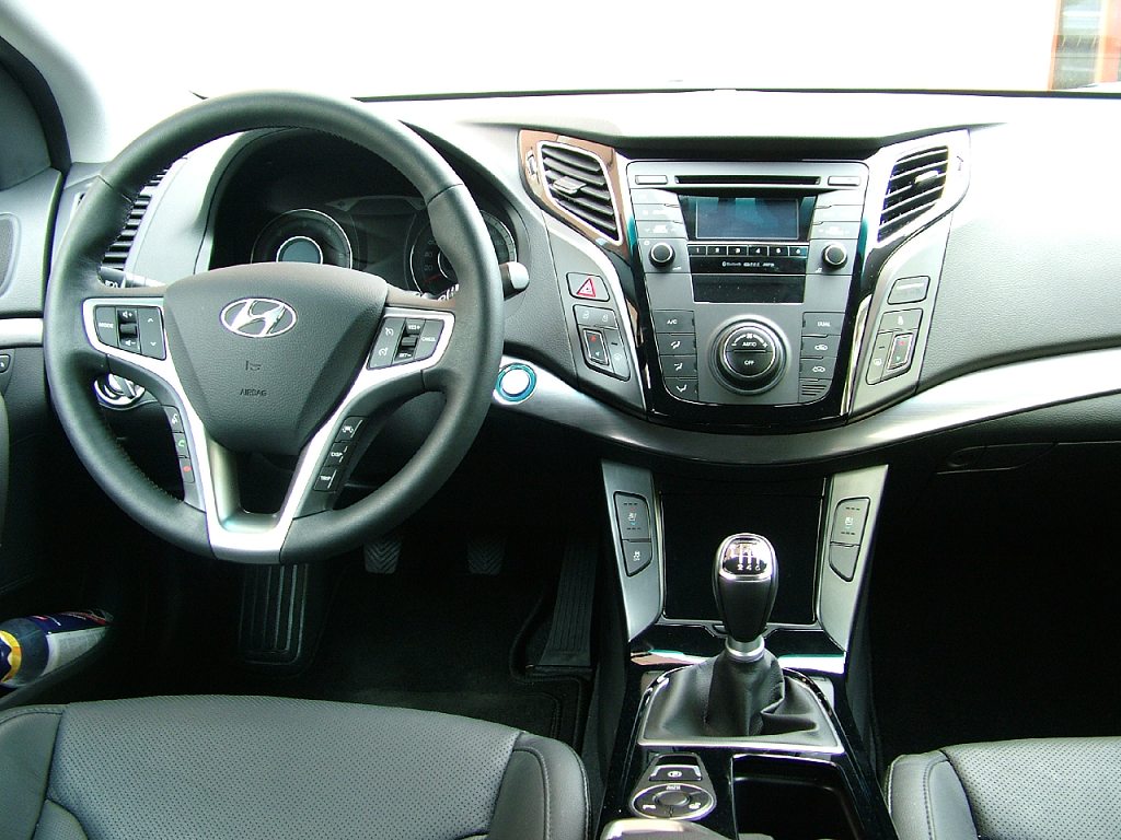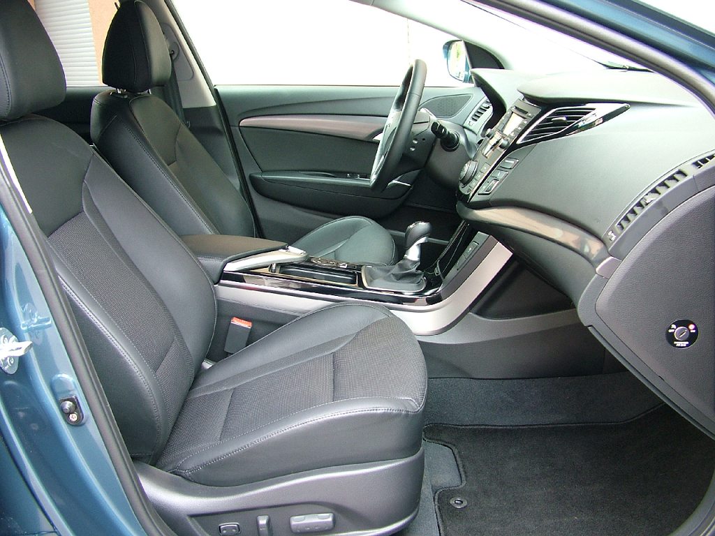 Estetický dojem tedy bezpochyby na podtrženou 1, i když šťouralové by našli nějakou tu inspiraci v detailech u evropské konkuence. Boční silueta vozu zase připomíná jistý japonský kombík. Nevadí, to nám za volantem může být úplně jedno! Vždyť dnešní designéři opisují každý od každého. Navíc se nám sedí báječně pohodlně a dovnitř jsme na zcela rovnou ložnou plochu dostali všechna plánovaná zavazadla. Vnitřní prostor pro cestující i náklad tedy opět za 1. Jestliže jsme pochválili velikost, tvar i materiál, na kterém sedíme, bylo by podivné, kdyby jiné části interiéru nevyzněly podobně luxusně. Přístrojová deska? Radost pohledět! Tvarově zajímavá, materiály z měkčených plastů. Kdeže jsou někdejší obhroublé plastové tvrďáky, které při zaťukání na „palubku“ odradily nejednoho zájemce o korejské vozy. K eleganci interiéru i40 přispívá i klavírový lak, který je využitý s decentní střídmostí. Je tam, kde zvýrazňuje luxus, ale není ho zase příliš mnoho, aby svým leskem budil dojem zbytečné okázalosti. Vyvážená elegance, dá se říci ve zkratce.