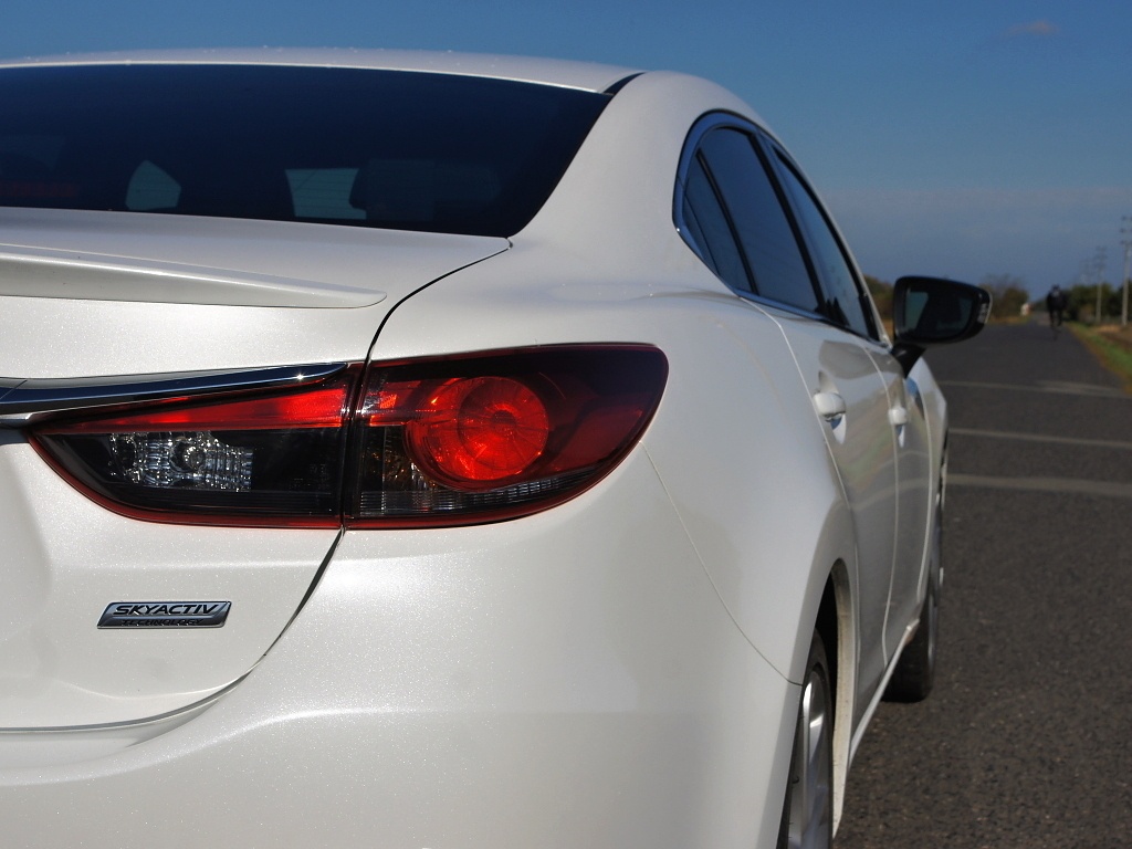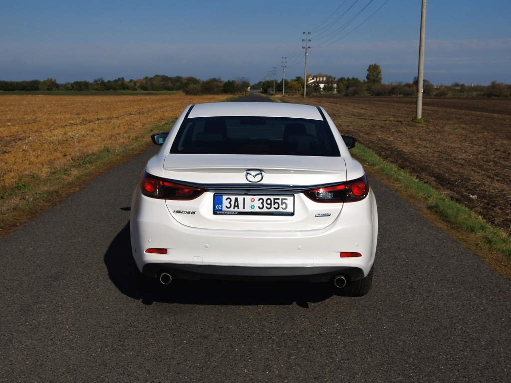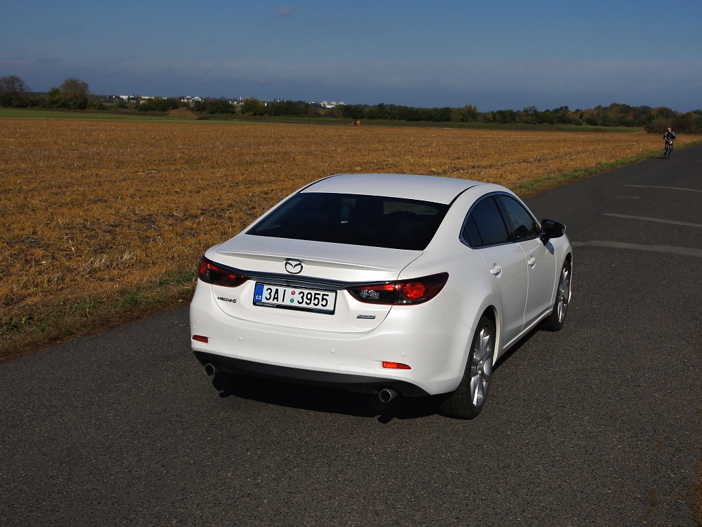 Nová Mazda 6 ve verzi sedan je obrovská. Její karoserie na délku měří 4.870 mm při rozvoru náprav 2.830 mm, jelikož sedan má o 120 mm delší rozvor než kombi (2.750 mm). Sednete-li za volant, pocit velikosti okamžitě vymizí. Mazda je neuvěřitelně lehká (testovaný kousek se chlubí pohotovostní hmotností jen 1.360 kg). Právě to je hlavní pocit, který si ze svezení řidič odnáší. Mazdě se podařil husarský kousek. Šestka se řídí tak nějak sama, přesně tak, jak bychom od sedanu střední třídy očekávaly, a přitom nabízí nevídaný komfort spojený se skvělými jízdními vlastnostmi. Podvozek funguje díky skvělým tlumičům naprosto ukázkově, občas nám jízdní projev šestky připomínal chování vzduchového podvozku, který známe z Citroënu C5 nebo Mercedesu C. Jistá plavnost je příjemná a jediným problémem mohou být doopravdy velké výmoly. Devatenáctipalcových kol jsme se při přebírání vozu trochu obávali, ale týden strávený za volantem ukázal, že obavy byly naprosto zcestné a komfort je dostatečný. Ukázkově si vede šestka, i když zvýšíte tempo. V zatáčkách je vůz velmi jistý a ochotně následuje přední kola, stejně dobře si vede i na dálnici, kde je ve vysokých rychlostech stabilní a díky dobré aerodynamice dobře prořezává vzduch.