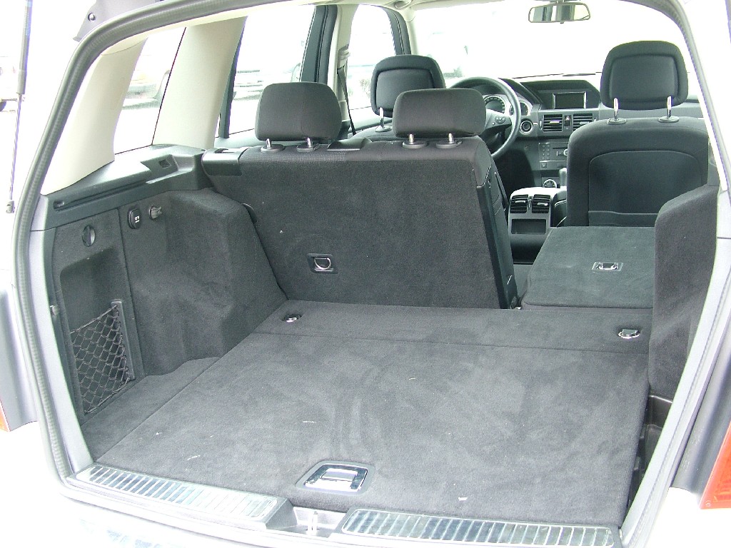 Zdůraznit si zaslouží prostornost na všech sedadlech i snadné sklápění těch zadních. Stejně jako u jiných mercedesů najdete na zadní straně předních opěradel praktická vybrání kvůli zvětšení místa pro nohy cestujících vzadu. Toho je dostatek především díky rozvoru délky 2,755 m, kterým GLK přesahuje například o téměř dvacet centimetrů delší Mazdu CX7. Snadným sklopením zadních sedadel do podlahy vznikne rovná a nad očekávání rozměrná plocha pro náklad. Základní objem 450 l pro zavazadla lze rozšířit více než trojnásobně. Na hodnotu 1550 l nedosáhne řada větších „esúvéček“ než je GLK. Například o téměř deset centimetrů delší Opel Antara nebo již zmíněná Mazda CX7. Hranaté tvary mají své výhody. Prostor je využitelný do posledního krychlového centimetru.