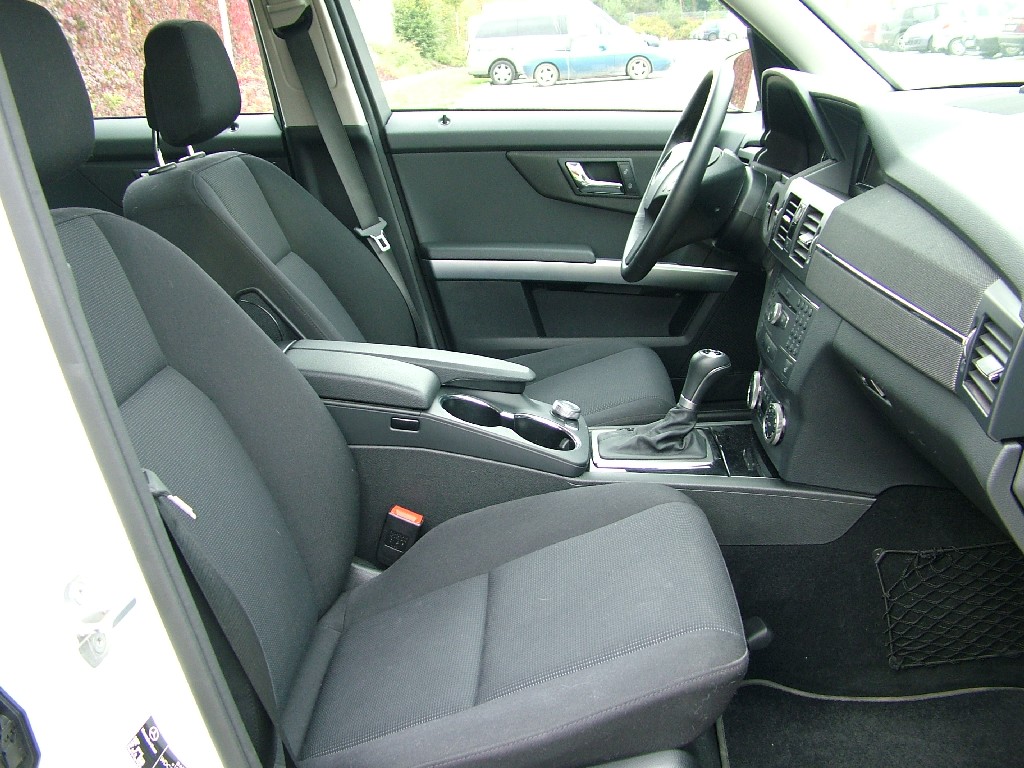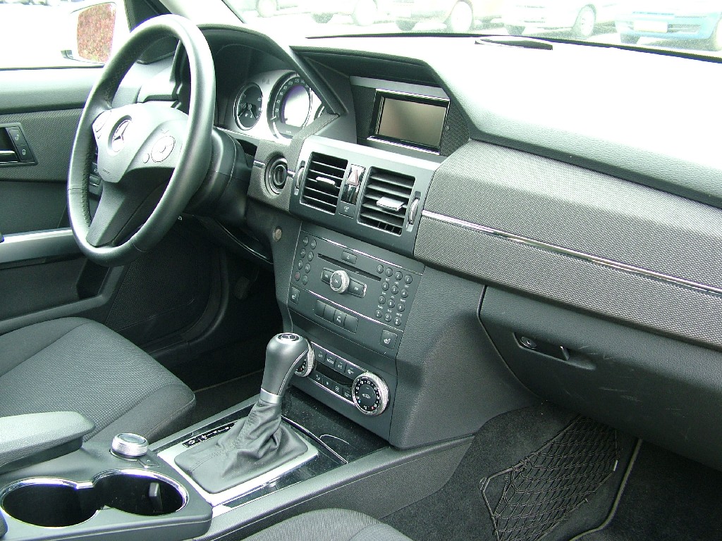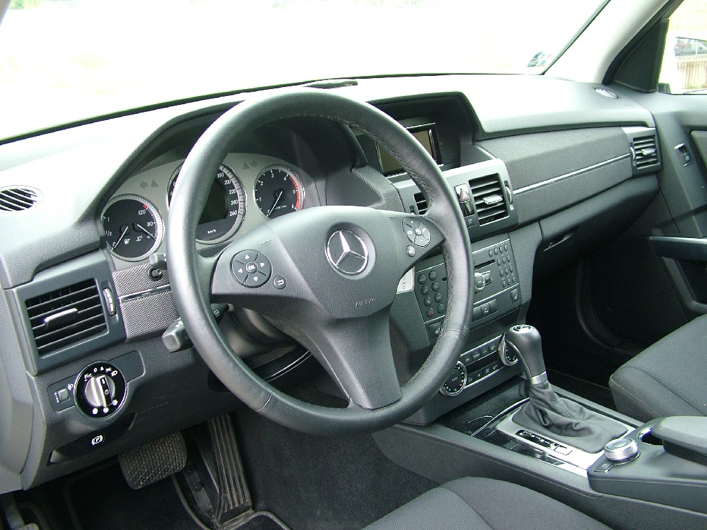 Charakteristické hranaté tvary GLK vstoupily rovněž do interiéru. Kvalitní materiály a perfektní zpracování uvnitř kabiny považujeme u mercedesu za samozřejmost. Není příliš důležité, že některé ovladače a tlačítka znáte z jiných modelů značky. Pracoviště řidiče GLK je příjemné místo pro cestování. Při pohledu na přístrojovou desku tohoto modelu je však patrný odstup od pojetí luxusu vyšších tříd ML a GL. Střídmý luxus, mohli bychom říci. Někdo by ho nazval třeba spartánským, přičemž o luxus jde stále. Tam, kde většina vozů volí mezi tvrdými a měkčenými plasty, najdete u GLK textilní dekor, případně imitaci hliníku či dřeva. Na omak příjemné textilní řešení se k SUV hodí a líbilo se nám. Přesto mohou mnozí považovat interiéry přímých konkurentů Q5 a X3 v tomto segmentu za hodnotnější na pohled. Také bychom mohli říci změkčilejší či zženštělejší. Nám se poněkud spartánské pojetí interiéru GLK zamlouvalo.