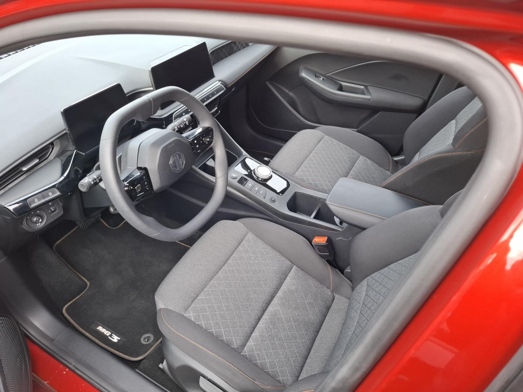 Velmi mile nás překvapilo odhlučnění kabiny. To se povedlo a jediným rušivým elementem je spalovací motor v momentě, kdy jedete nad osmdesát a stlačíte plynový pedál. MG3 Hybrid+ se v nízkých rychlostech chová jako hybridní Hondy, ve vysokých pak zvukem jako hybridní Toyoty. S britsko-čínským hybridem se jezdí lehce, svižně a tiše. O zvyk jsou brzdy, ty se v některých momentem vyznačují přehnanou reakcí. V momentě, kdy rychle začnete brzdit nebo více stlačíte brzdový pedál (to se brzdové destičky okamžitě zakusují do kotoučů).