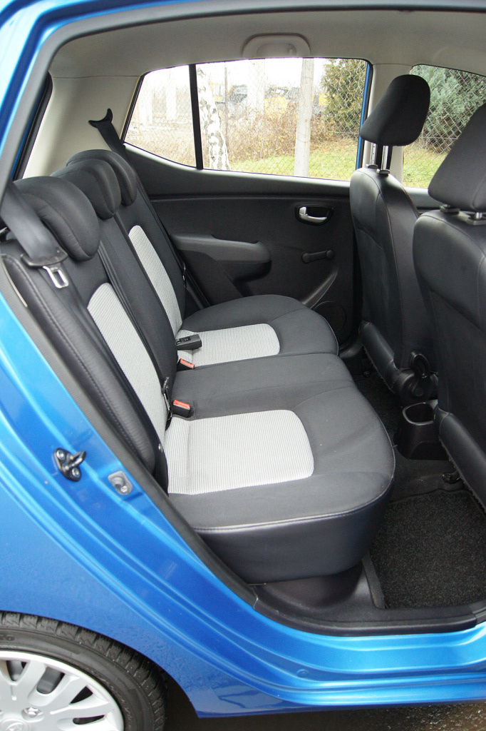Korejský Hyundai i10 si nestojí zle ani z hlediska prostornosti. Zatímco interiér nabízí dostatek i pro cestující vyšších postav - to je dáno vyšší karoserií, která tam na pohled možná až tolik do oka nepadne: vůz je poměrně úzký, přitom s vyšší stavbou karoserie. Je to ale praktické. Sedadla mohou zprvu trochu odrazovat, avšak neodsuzujte je, dokud je řádně nevyzkoušíte. Jejich tuhost je klíčem k dobré opoře těla i při delších jízdách. Zmínit musíme také zavazadlový prostor o objemu 211 litrů, což je v dané třídě nejmenších aut velice dobrá hodnota.
