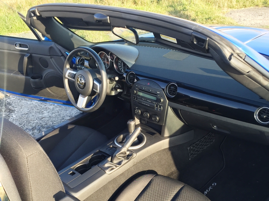 V interiéru „MX-5ky“ nenajdete žádné složitosti. To výrazně umožňuje mnohem více vnímat automobil. Perfektní! Vše je jednoduché, přehledné a snadno dostupné. Jedinou věcí, která s přehledností úplně nekoresponduje, je umístění táhla od otevření víčka nádrže. To je v přihrádce mezi opěradly sedadel (zasvěcení vědí).