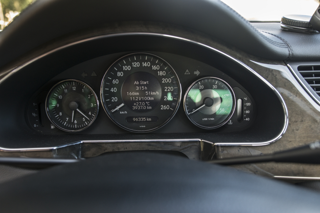 Prakticky okamžitě však odhalíme první slabinu. Se 185 centimetry výšky a sedadlem řidiče kdesi ve střední poloze hlavou narážím do stropnice. Říkám si: „Nevadí…“, a v domnění, že po správném seřízení sedadla bude vše v pořádku, i nadále podléhám kouzlu interiéru. Konečně nastavuji sedadlo. Už, už se zdá, že se situace rapidně zlepší, když v tom se spouštění zastaví. Nutno tak přiznat, že CLS (navíc se střešním oknem, které prostor nad hlavou ještě ubere) se skutečně nehodí pro osoby přesahující mou výšku. Ani já zde navíc nenacházím ideální pozici, a přestože se vcelku pohodlně usazuji v mírně neřidičské pozici více naležato, rozhodně bych zde nechtěl razit přes půl kontinentu podobně jako v modernizovaném modelu W211, na jehož základech extravagantní varianta CLS spočinula. Celý test bazarové třídy E ostatně najdete zde.