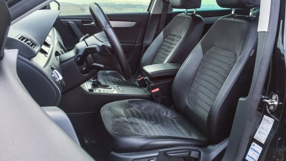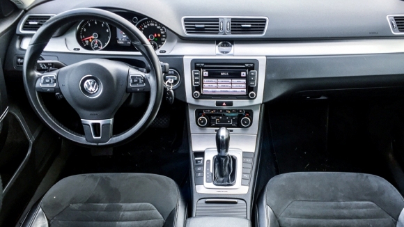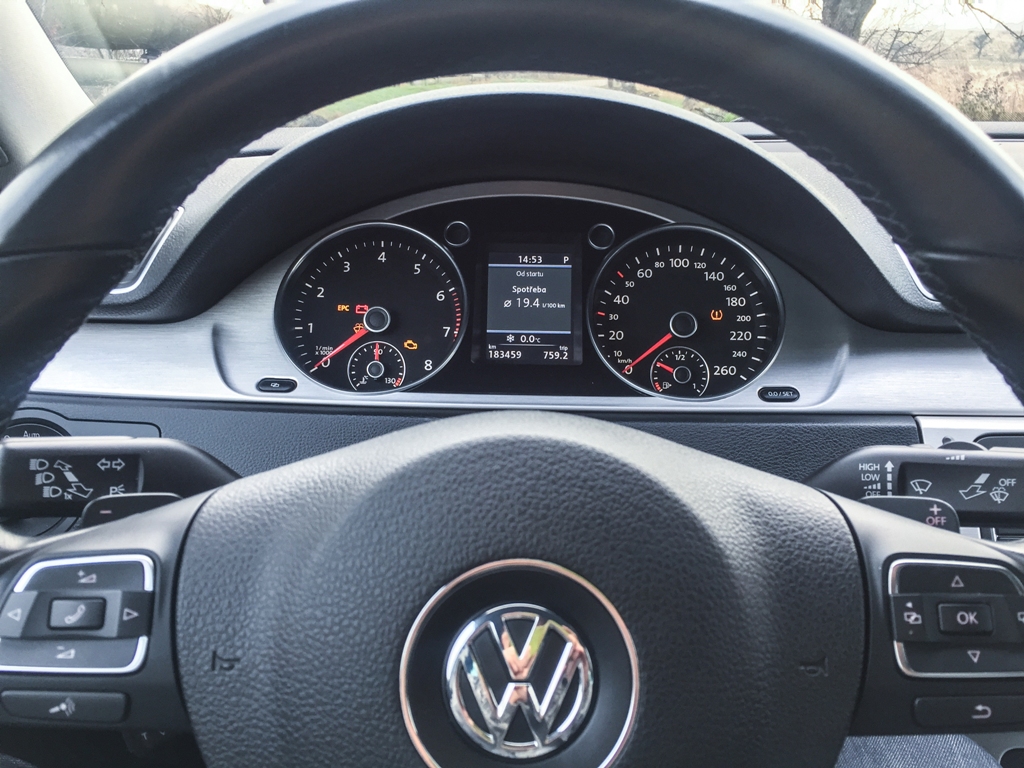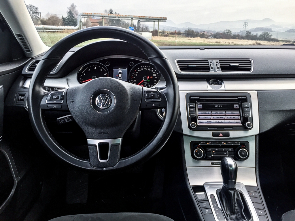 Navzdory výši pořizovací ceny se ale již začaly objevovat dílčí nedostatky v kvalitě zpracování jednotlivých částí. Passat tudíž chrastil a to výrazněji, než je pro něj obvyklé. Chrastil středový panel, kaplička přístrojů, ale třeba i loketní opěrka, pro kterou se Volkswagen u generace B7 snažil zajistit kvalitnější výrobu (málokdo tuší, že pro Passat B7 byl tento díl vyvíjen v Mostě, v severních Čechách). Pídili jsme se proto po původu vozu a zjistili, že kromě výměny zadního okna nebyl nikdy havarován. Kritika zpracování tedy definitivně padá na hlavu výrobce lidových automobilů..jpg)