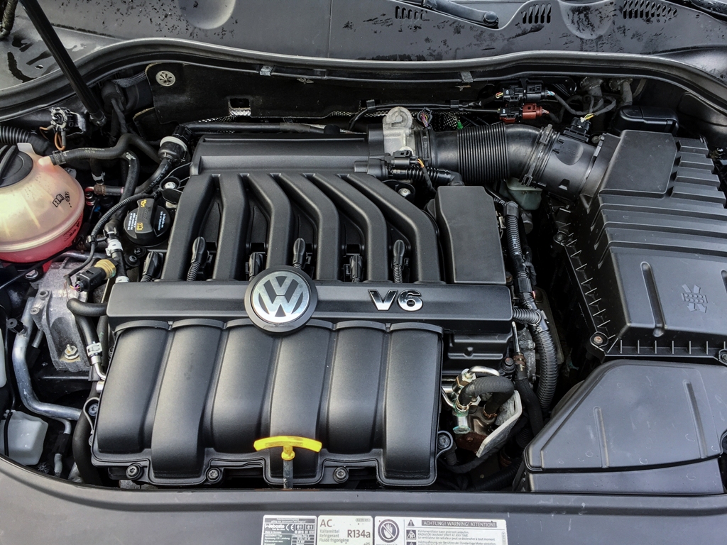 Neobvyklé uspořádání šesti válců s úhlem protilehlého sevření pouhých 10,6 stupňů (odtud pojmenování VR6) totiž motoru dovoluje disponovat vysokým točivým momentem již při nižších otáčkách. Výsledkem je tak přijatelných 350 newtonmetrů v pásmu od 2 400 otáček až do 5 300, kde se díky atmosférickému charakteru lačnícímu po otáčkách připojuje již značná část z maxima uváděné síly. Červené pole leží na hranici 7 000, při nich se motor libě rozezní a potěší sladkou výkonovou špičkou. To vše spolu s pohonem všech kol a šestistupňovým DSG passatu stačí, aby z klidu na 100 km/h vyrazil již za rovných 5 sekund a rozjel se až na elektronicky omezených 250 km/h. Podáváné výkony jsou však (mírně řečeno) bez emocí. Zkrátka Volkswagen Passat.
