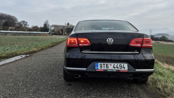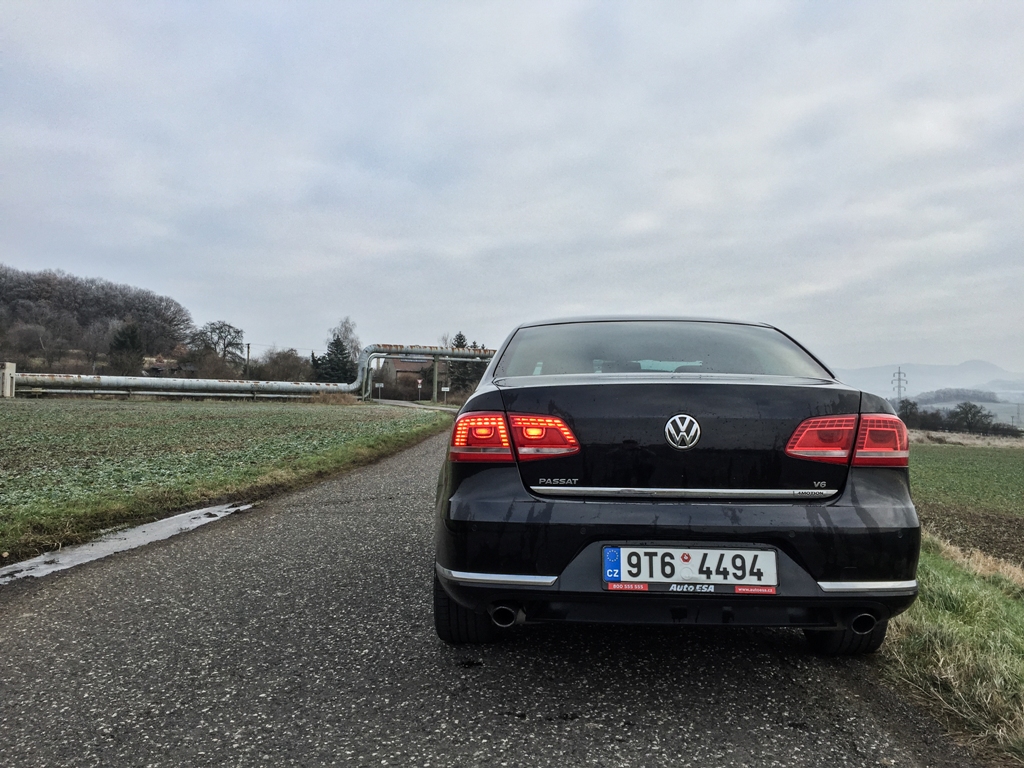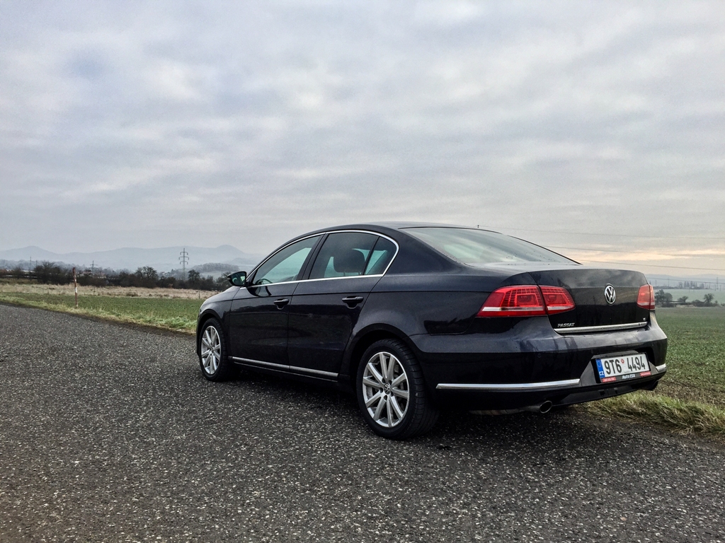 Dnes testovaný vůz ovšem přijíždí v nejběžnějším provedení sedan a navíc v černé barvě. Nenápadnější auto byste pohledali jen těžko (o to vtipněji působí, že vás ale každý vidí, protože přesně takové auto hledá, aby se náhodou nenechal zmerčit). Passat svým designem rozhodně neurazí, a přestože se nám jeho zadní, poměrně hranatá část zpočátku nelíbila, po více než 5 letech jsme si zvykli..jpg)