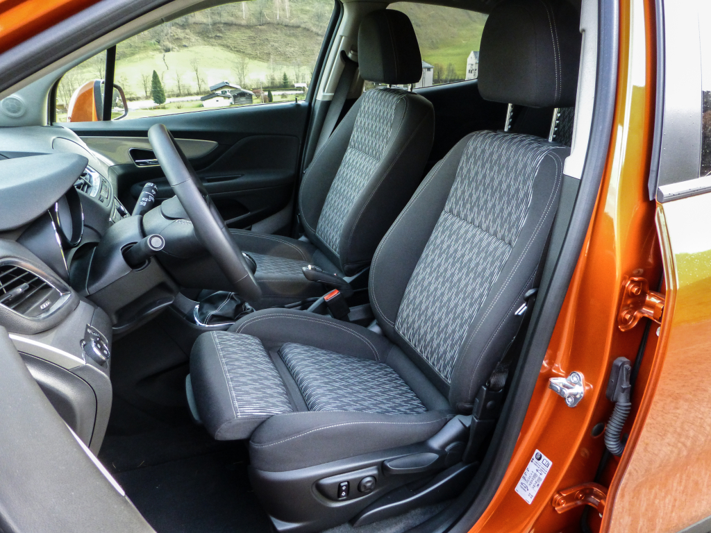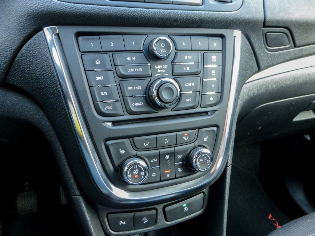 Přesuňme se dovnitř, abychom si přiblížili vnitřní prostor malého SUV a jeho interiér. Začněme palubní deskou. Ta v testované výbavě drive! působí poměrně zdařile, a i když jsou lesklé plasty ve výplních dveří možná už trochu moc, byli jsme s celkovým ztvárněním poměrně spokojeni. Tlačítka… Kritizování velkého množství tlačítek na středovém panelu se u nedávných Opelů stalo již jakýmsi folklórem automobilové publicistiky, jenže… Toto řešení má i své výhody. Samozřejmě, zpočátku jsme stejně jako všichni před námi byli zmateni. Po pár dnech ale člověk zjistí, kde co je, a najednou se stává nesmírně vhodným, aby měla každá funkce svůj čudlík/tlačítko, a není se potřeba složitě proklikávat palubním systémem, nota bene ještě něco lovit na dotykovém displeji, jak je dnes moderní. Je to zkrátka takové anti-novinářské řešení, což však lidem, kteří s Mokkou žijí dennodenně, jistě vadit nebude.