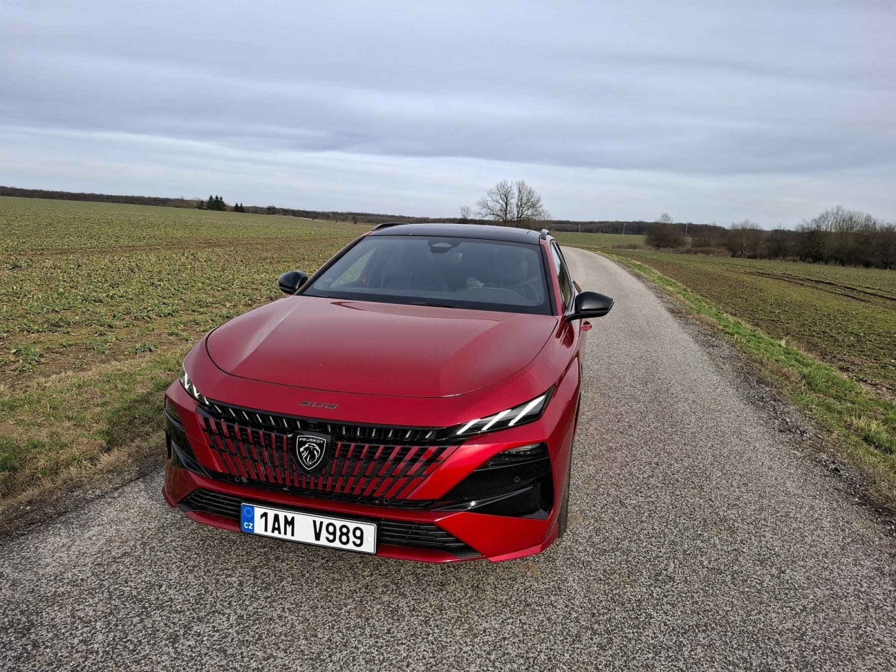 Peugeot 308 SW si drží své atraktivní linie, červený lak mu pak vyloženě sluší