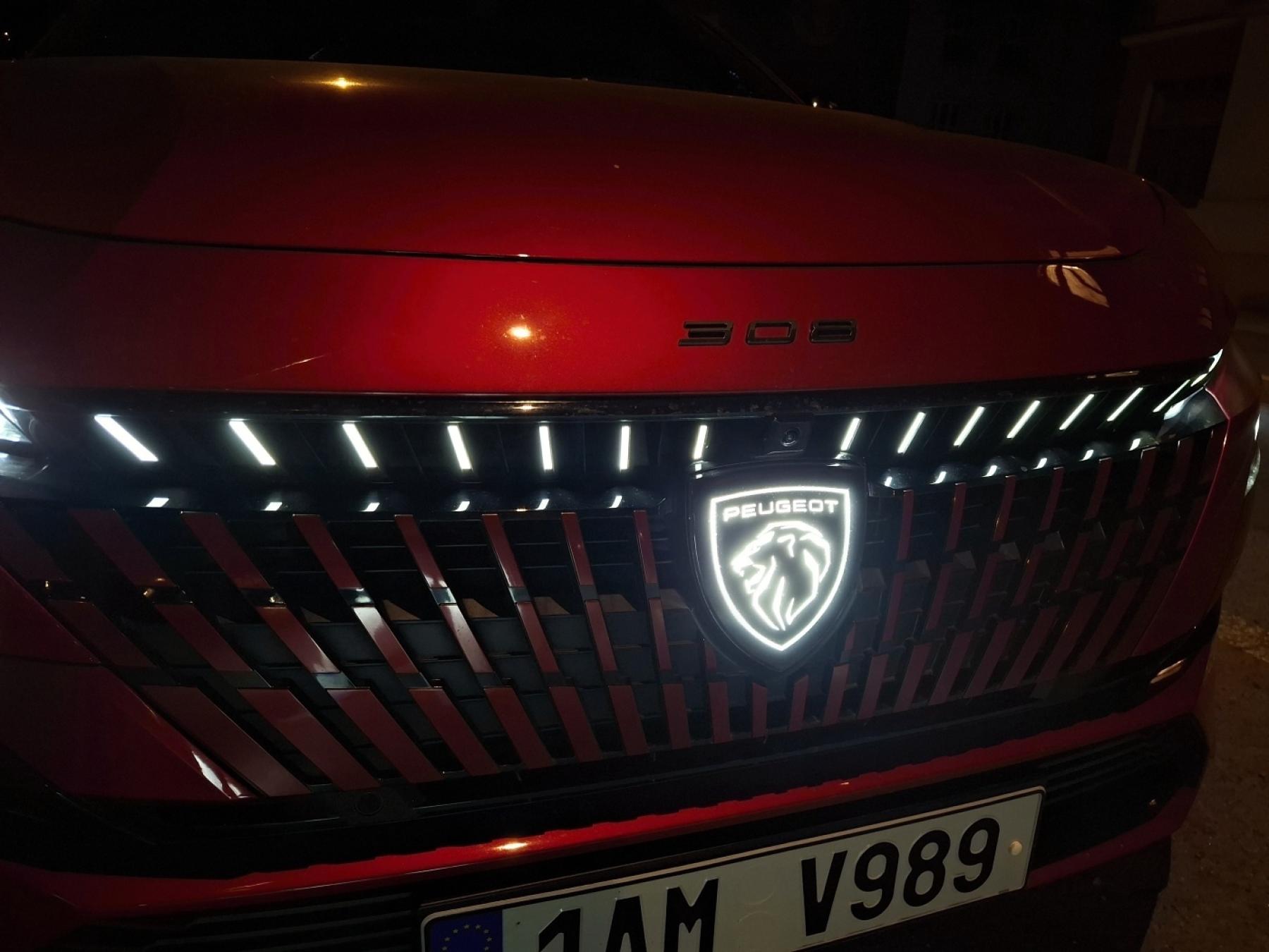 Osvětlené logo Peugeot je velmi působivým prvkem podtrhujícím jedinečnou osobnost modelů 308 a 308 SW. V této podobě je logo v rámci značky použito vůbec poprvé. Stává se středobodem přepracované přídě a hrdě vyjadřuje příslušnost ke značce.