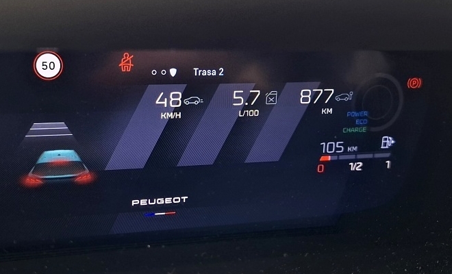 Ale zpět k testovanému mild-hybridu. Benzínová dvanáctistovka je tu spojená s šestistupňovou elektrifikovanou dvouspojkovou automatickou převodovkou e-DCS6. Díky baterii, která se automaticky dobíjí při jízdě, poskytuje tato technologie dodatečný točivý moment pro potřebnou akceleraci při zachování nízké spotřeby Peugeot uvádí, že v městském provozu dokáže hybrid jezdit až padesát procent času v čistě elektrickém režimu. Nás se této hranice podařilo dosáhnout jen při velmi rozvážné jízdě připomínající eco rallye. Mimo město jsme se často nedokázali dostat přes třicet procent. To však nic nemění na faktu, že s hybridem se jezdí konečně velmi příjemně. Slovo konečně píšeme záměrně, protože dosavadní hybridu od koncernu Stellantis nefungovaly úplně bez výhrad (vždy nám vadilo zejména cukání hybridní soustavy).