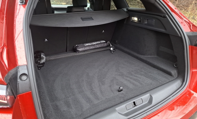 Peugeot 308 SW dlouhý 4.636 mm se chlubí rozvorem 2.732 mm a poskytuje posádce dostatek prostoru. Využitelný objem pro zavazadla činí u dieselu a hybridu 598 litrů (v případě dvoupolohové podlahy kufru). Elektrická verze pojme 505 litrů, plug-in hybrid jen 467 litrů. Zadní sedadla lze dělit na tři části (40/20/40) a sklápět. Praktické je i elektrické ovládání víka, které usnadňuje přístup do zavazadelníku, máte-li plné ruce.
