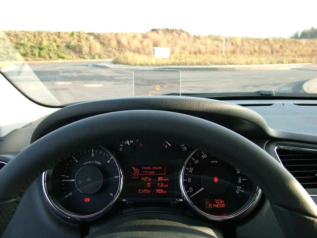 Vyvážená ergonomieVyšší poloha za volantem společně s velkým čelním sklem přispívá k přehledu o situaci v provozu. Testovaný vůz byl navíc vybavený prosklenou střechou (14 000 Kč), dojem vzdušnosti a prostorsnosti interiéru se tím ještě umocnil. Vyhovoval mi úhel sklonu volantu, který je v 5008 podobný jako v běžných nízkých autech. Tedy žádné „autobusácké“ kolo, které se občas ve vozech typu MPV vyskytuje. Ergonomie na jedničku, ovladače jsou intuitivně po ruce, navíc jsou převážně totožné s jinými modely značky. Osvědčené se nemá měnit. Kdo jednou s peugeotem jezdil, je v 5008 brzy jako doma. Vůz byl vybavený „Head up displejem“, tedy zařízením umístěným ve spodní části zorného pole řidiče, na které se promítají některé údaje. Zejména rychlost a také informace o čase, který dělí řidiče od vozu před ním. Tahle vymoženost je součástí čtvrtého, tedy nejvyššího stupně výbavy Allure. Příliš mě nenadchla. Tím že se údaje promítají na průhlednou destičku, jsou vnímány jakoby se zobrazovaly na čelním skle. Maličko to rozptyluje. Může se však najít řidič, který ocení informaci o tom, že za dvě a půl vteřiny narazí do auta před sebou.