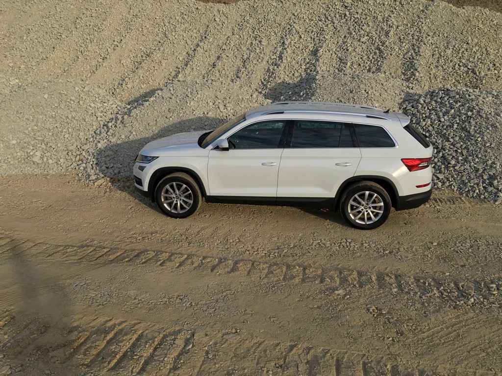 Sedmimístná varianta ale disponuje také světlou výškou 188 mm (pětimístná 187), takže by bylo hříchem nevyzkoušet Kodiaq v terénu. Vyrazili jsme na kamenolom, který byl plný zlomů, ostrých kamenů a prašných cest s vyjetými kolejemi od těžkých náklaďáků. Dle předpokladů - Kodiaq obstál. A obstál více než dobře. Z jeho projevu je sice odhadnutelné, že podobné zacházení by zřejmě nemuselo být v rozpisu jeho denních jídelníčků, vše, kam jsme jeli, ale zvládl. Pohon všech kol na principu mezinápravové spojky haldex páté generace funguje brilantně, a pokud by někdo chtěl náhodou namítat, že se čtyřkolka k základnímu motoru nehodí, ať si na to vzpomene, až bude mávat své ženě a dětem, kteří odjíždějí v průběhu sněhové kalamity. Ne, čtyřkolka tu rozhodně není na obtíž a ten metrák navíc a 2 deci ve spotřebě za přidanou praktičnost auta rozhodně stojí.