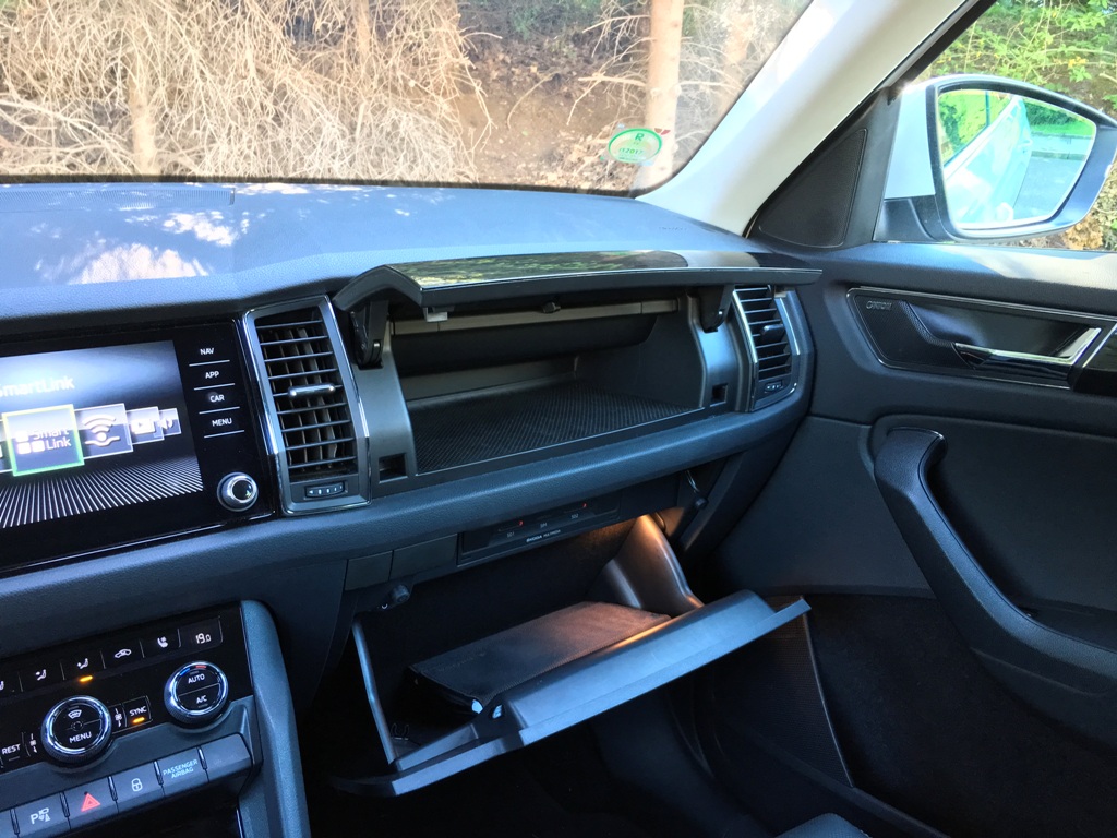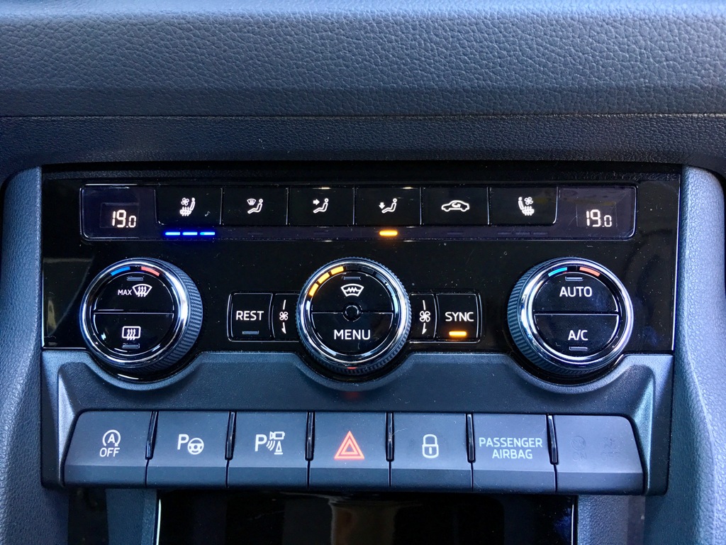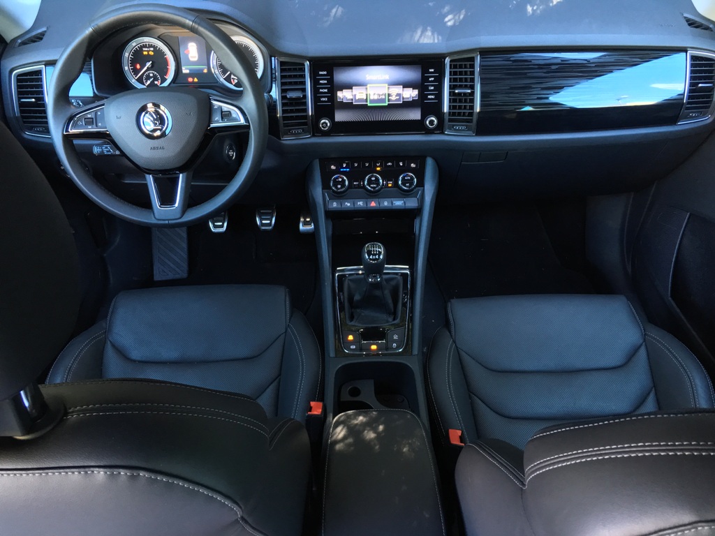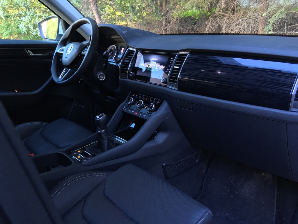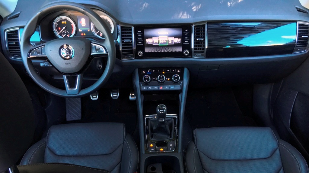 Na adresu vnitřního designu snesu již více kritiky. Palubní deska byla opět ponechána takzvaně "čistá", přičemž kombinuje hrany, lehce futuristický design s prolisem v prostřední části a tu nejmodernější techniku (se skleněným dotykovým displejem), kterou má Škoda k dispozici. Není to ošklivé, ba dokonce ani nepříjemné prostředí k životu. Blažené pocity, které popisuji v perexu, však ze samotného interiéru pramenit nebudou. Jsem si jistý, že kupříkladu s dřevěným dekorem verze Scout bude vnitřek zase o něco útulnější. V testovaném voze si ovšem díky přemíře černoty a lesklých povrchů připadáte jako příslušníci temné strany síly z Hvězných válek.