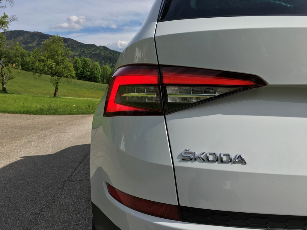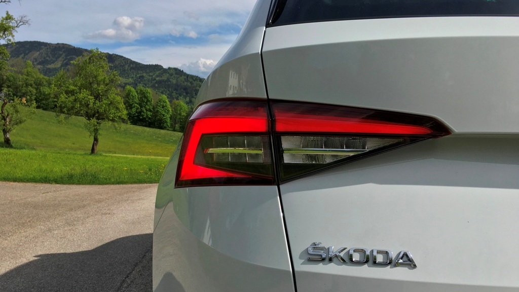 Ostré linky se přes boční partie s vysoko taženými blatníky a menší prosklenou plochu táhnou až k zádi, kterou kombinují efektně řezaná světla s designem evokujícím český krystal. Musím říct, že zadní část jsem zprvu považoval za slabší z obou konců vozu, ale začala se mi líbit. Designová čistota elektricky ovládaného víka pátých dveří a jemně zkosených světel nevyjde z módy ještě hodně dlouho. 18palcová kola pak představují přijatelný kompromis mezi designem a jízdním pohodlím. V redakci jsme se jednohlasně shodli, že větší ráfky bychom ani kvůli lepšímu chování na silnici nevolili. V kapitole Jízda se dozvíte proč! Pojďme na interiér.
