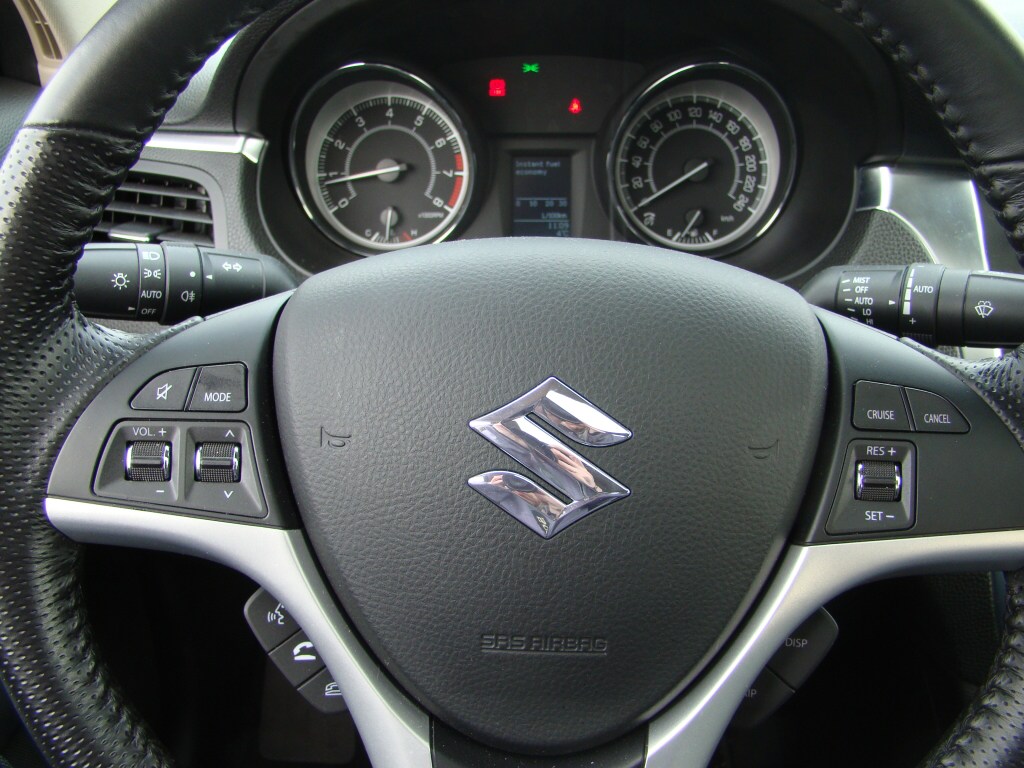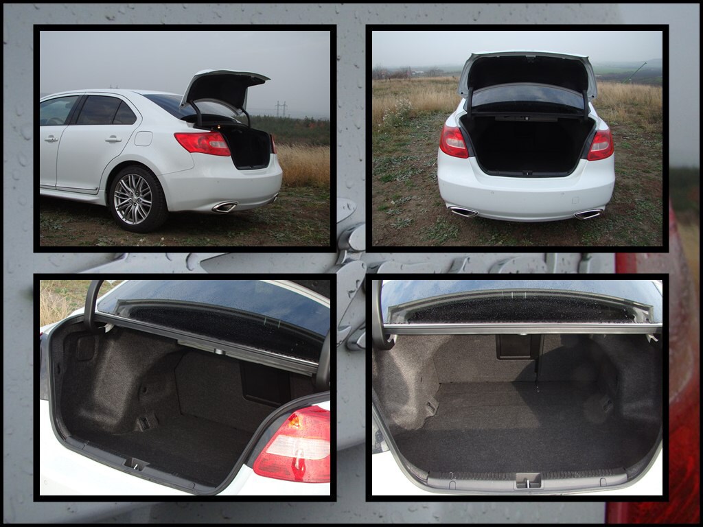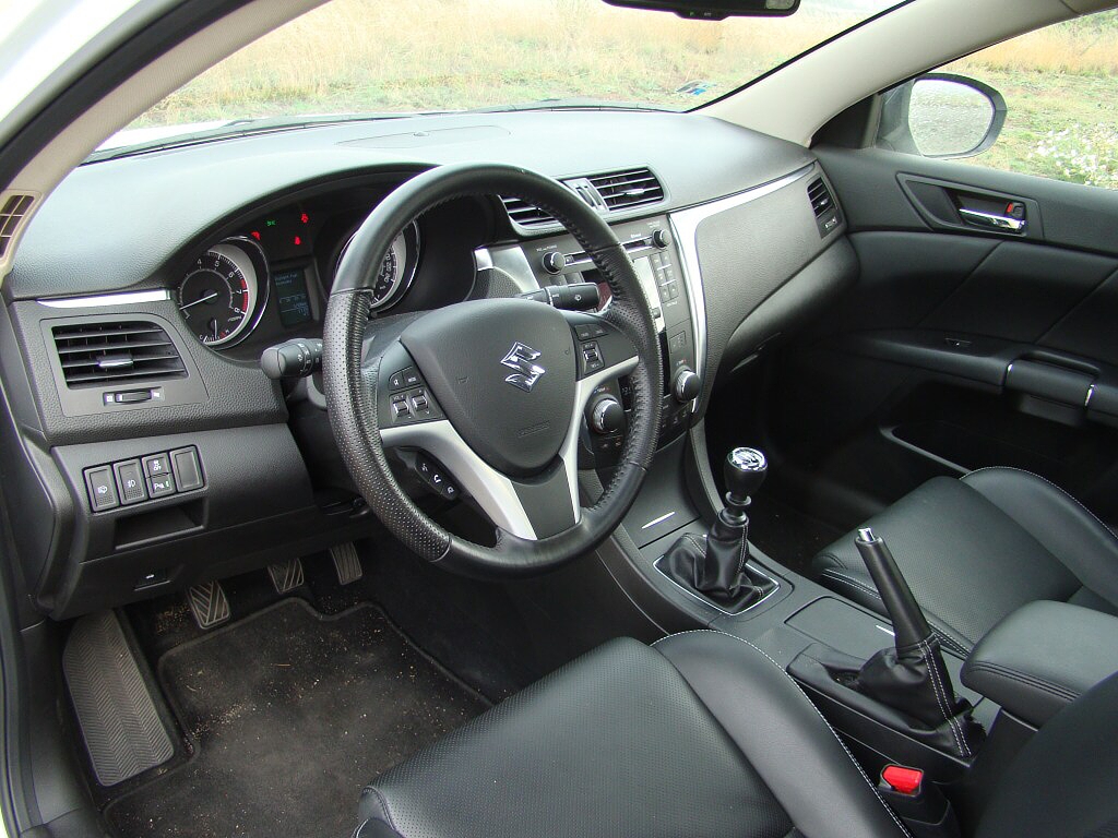 Řidiče potěší příjemná poloha za volantem a dobrý výhled z vozu. Tří-ramenný multifunkční volant se povedl. Dobře se drží, tlačítka a rolery se dobře ovládají (levá strana patří rádiu a telefonu, přičemž vpravo nastavíte tempomat). Údaje z palubního počítače jsou zobrazovány v kapličce za volantem mezi dvojicí kruhových ciferníků. Ty mají vcelku husté cejchování, přesto jsou stále přehledné. Středový panel patří autodiosoustavě a klimatizaci. Bohužel archaický displej připomínající ten v daleko menším Swiftu se do Kizashi příliš nehodí. Panel je sice přehledný, ale stále na mě působil jako z automobilů z devadesátých let. Bezklíčkové startování je příjemné a v dnešní době se stává (ve střední třídě) standardem. Opěradla zadních sedadel lze sklápět, ovšem jen na pevné sedáky díky čemuž vzniká mírný schod. Objem zavazadelníku není nejhorší (461 l), ale jeho využitelnost není zrovna ukázková (směrem dovnitř se totiž výrazně zužuje - z 1320 mm až na 930 mm).