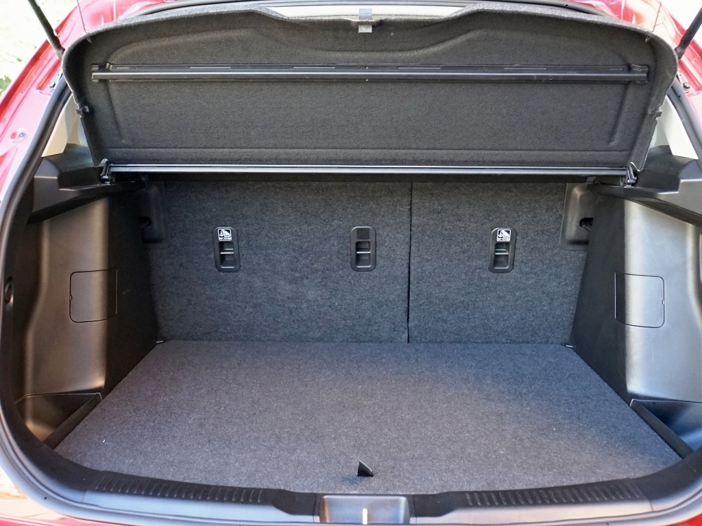 Kufr pojme 430 litrů nákladu, má dvojité dno, které vyrovnává schod vzniklý případným sklopením opěradel zadních sedadel. Přístup do zavazadelníku je ukázkový, což nelze říct o zavírání pátých dveří, jejich bezproblémové zavření vyžaduje více síly (jednoduše s nimi musíte třísknout). Pod podlahou kufru je místo pro rezervu (standardně dostanete jen opravnou sadu).