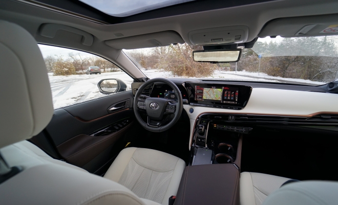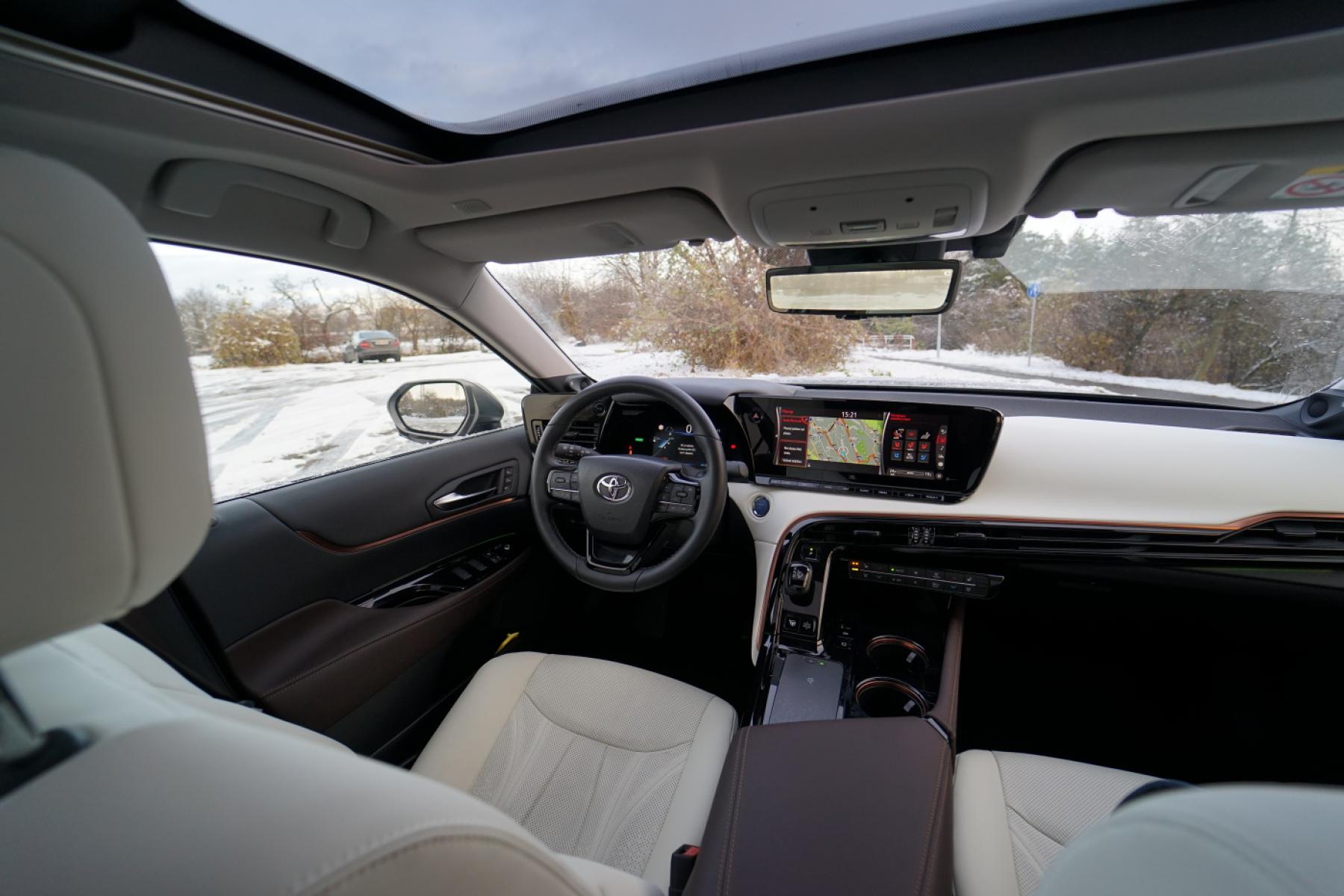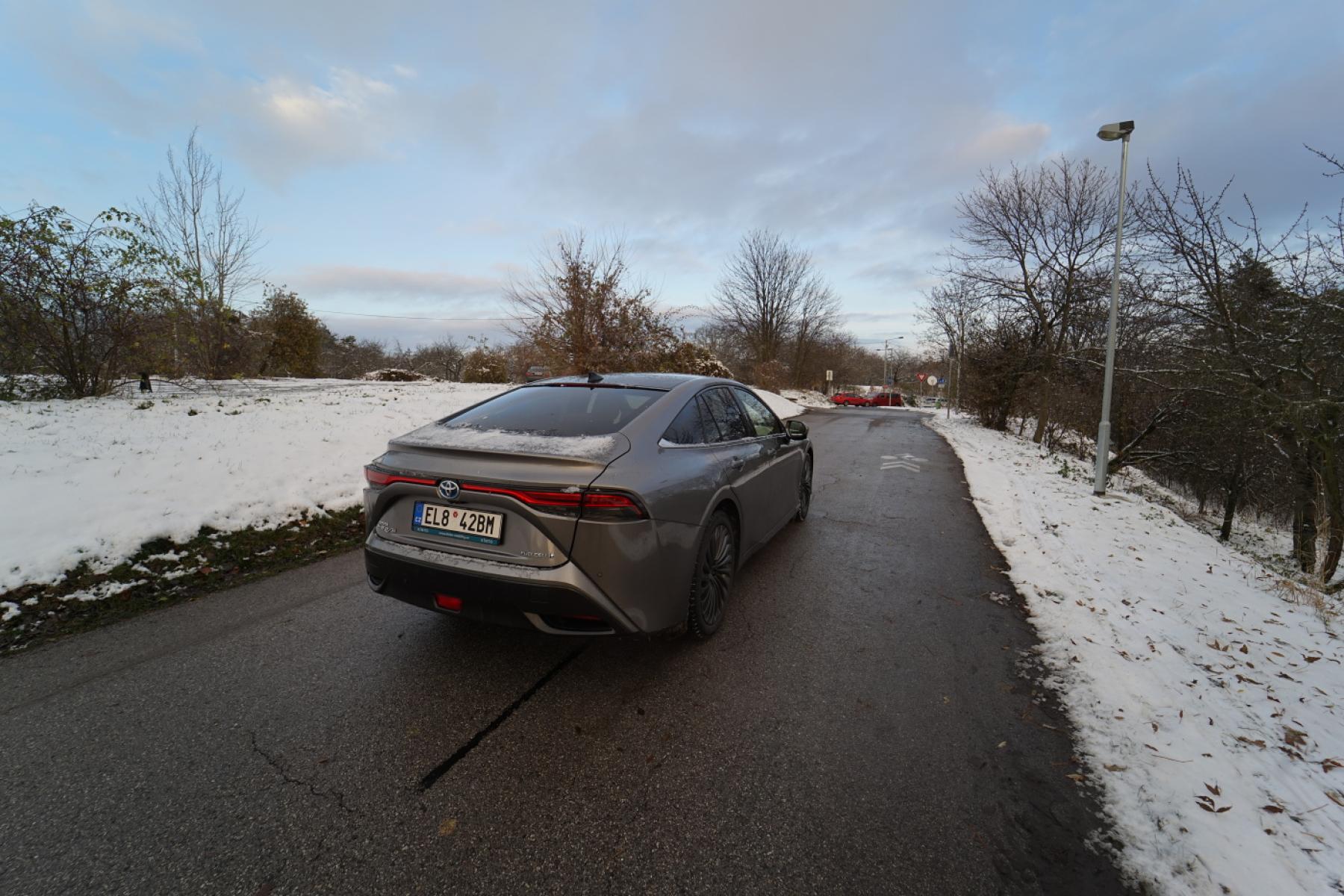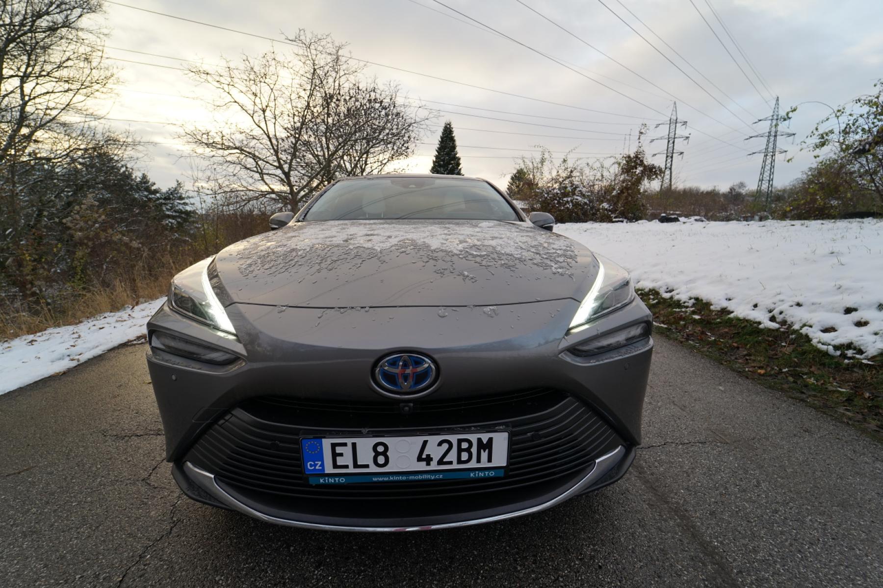Během testovacího týdne navíc napadl sníh a my neváhali ani chvilku a vyrazili zkoušet schopnosti vodíkového vozu. Mirai obutý do nových dvacetipalcových zimáků od Pirelli byl na sněhové pokrývce výtečným společníkem. Pohon zadních kol nás ani trochu nelimitoval ani netrápil. Stačilo sešlápnout plynový pedál a vůz se i v prudších stoupáních vždy dal plynule do pohybu. Žádné protáčení kol ani házení zádi. Stabilní chování zaručovalo bezpečnou plavbu. A pokud vypnete stabilizaci, můžete si s pětimetrovým sedanem užívat pohonu zadních kol (automobilce se podařilo dosáhnout téměř ideálního rozložení hmotnosti mezi nápravy).