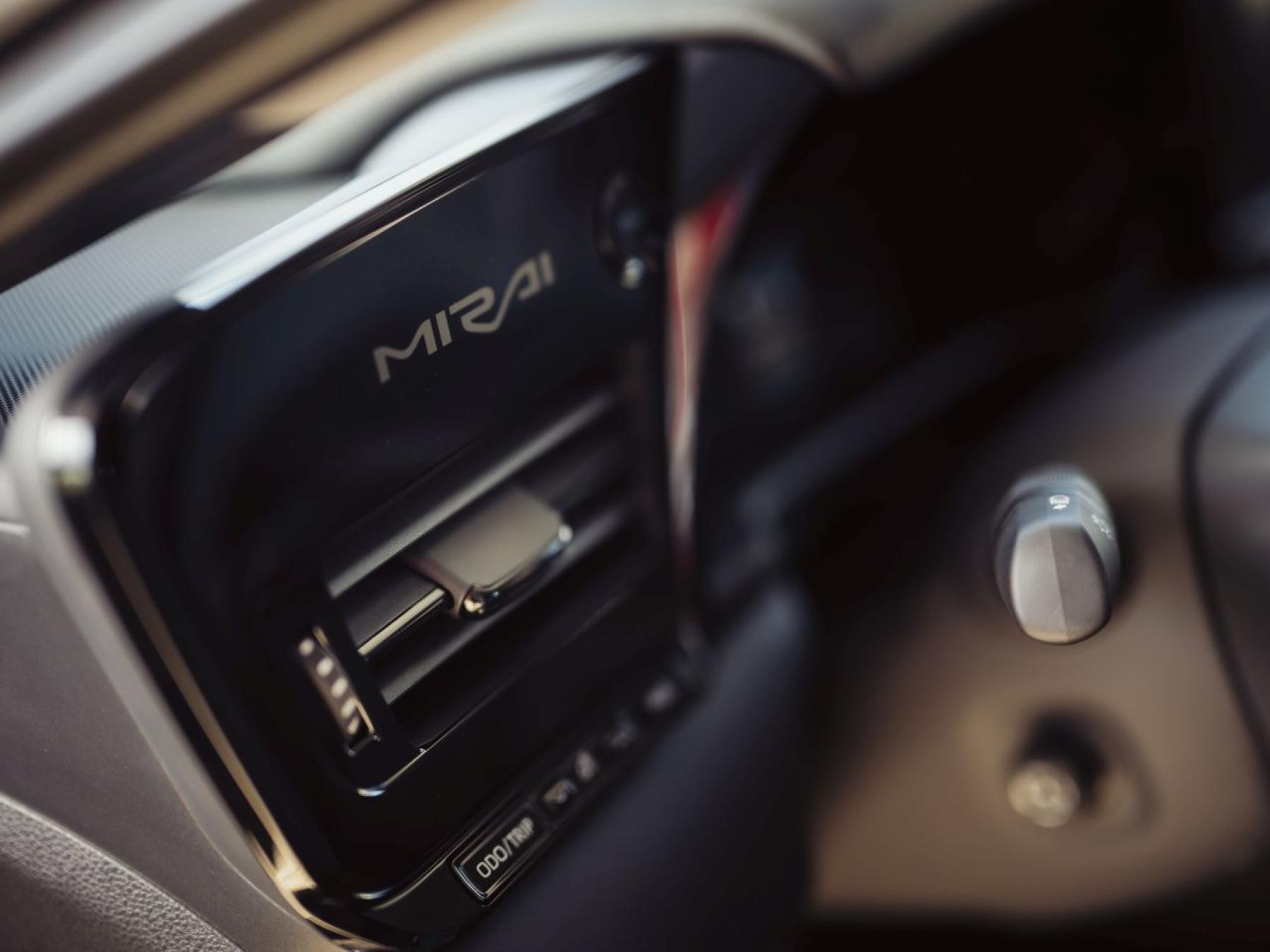 Mirai je vlastně elektromobil, který nespoléhá na dobíjení a energii si vyrábí přímo na palubě. Jedinou odpadní látkou je čistá voda, kterou lze vypustit tlačítkem umístěným na palubní desce. Vodík se tankuje do trojice vysokotlakých nádrží z uhlíkových vláken, které ho pojmou celkem 5,6 kilogramu. Jedna nádrž je ukryta pod středovým tunelem (o té již byla řeč), druhá pod zadní lavicí a třetí nejmenší pod podlahou kufru (ta právě snižuje objem zavazadelníku).