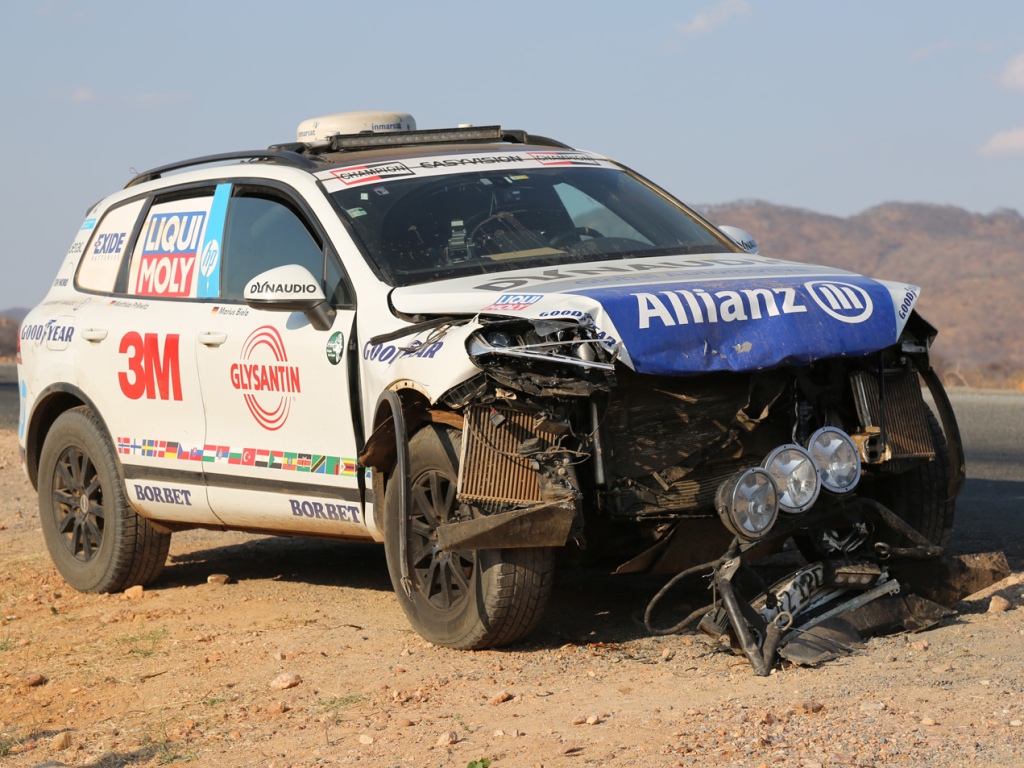 Zietlow a jeho týmoví jezdci Marius Biela a Matthias Prillwitz jeli v souladu s časovým plánem, když se šestý den cesty v Tanzanii stali nezaviněně účastníky dopravní nehody. „Nikdo nebyl zraněn, ale když jsem viděl naše auto, myslel jsem si, že nám nezbývá nic jiného, než to vzdát,“ vzpomíná si Zietlow. „V servisu se rychle ukázalo, že motor, ani převodovka nebyly poškozeny, takže jsme se chtěli přesvědčit, co ještě dokážeme.“ Touareg byl v Tanzanii opraven pomocí Originálních dílů Volkswagen, aby absolvoval poslední etapu z místa nehody Iringa až na Střelkový mys.