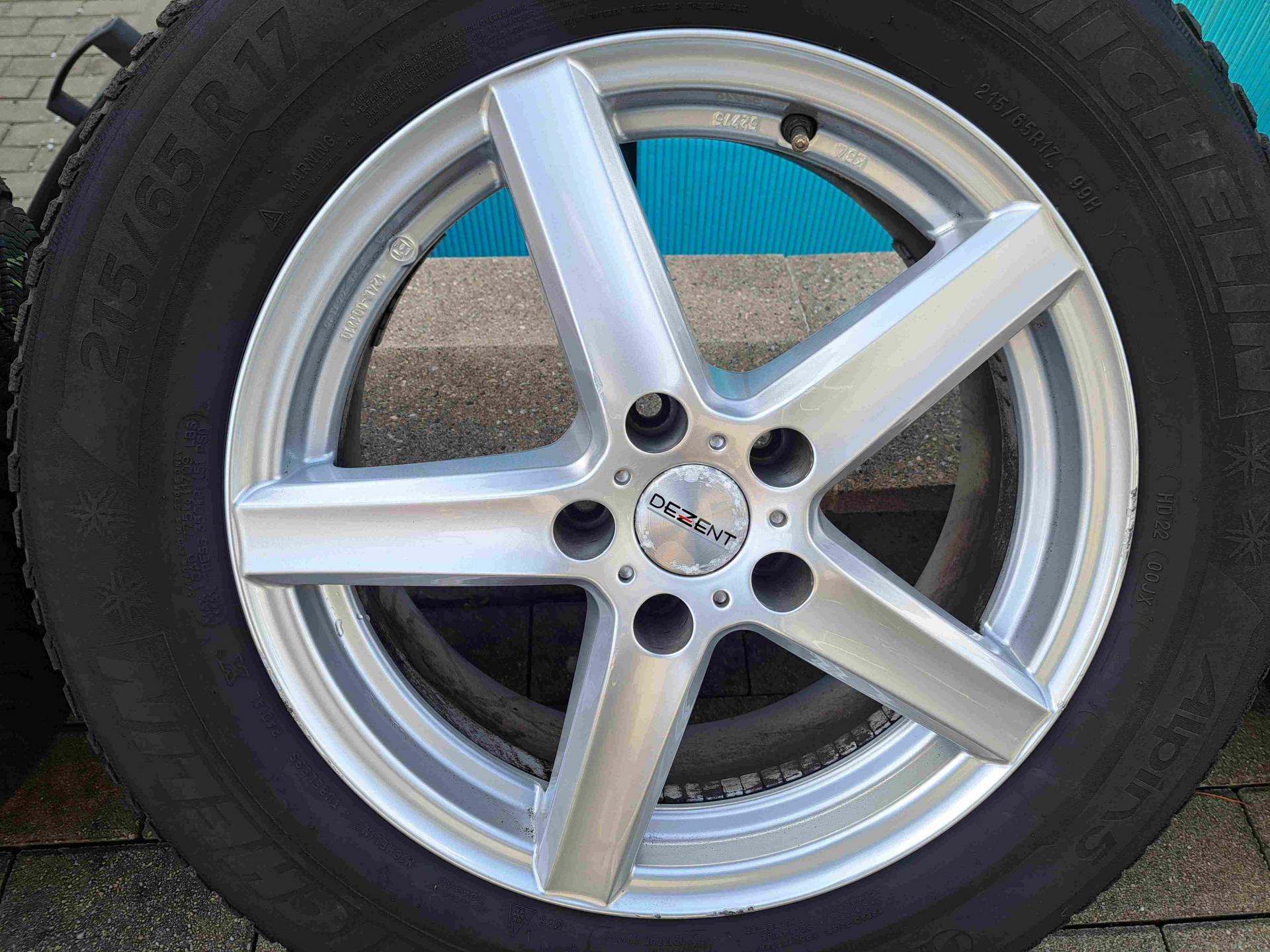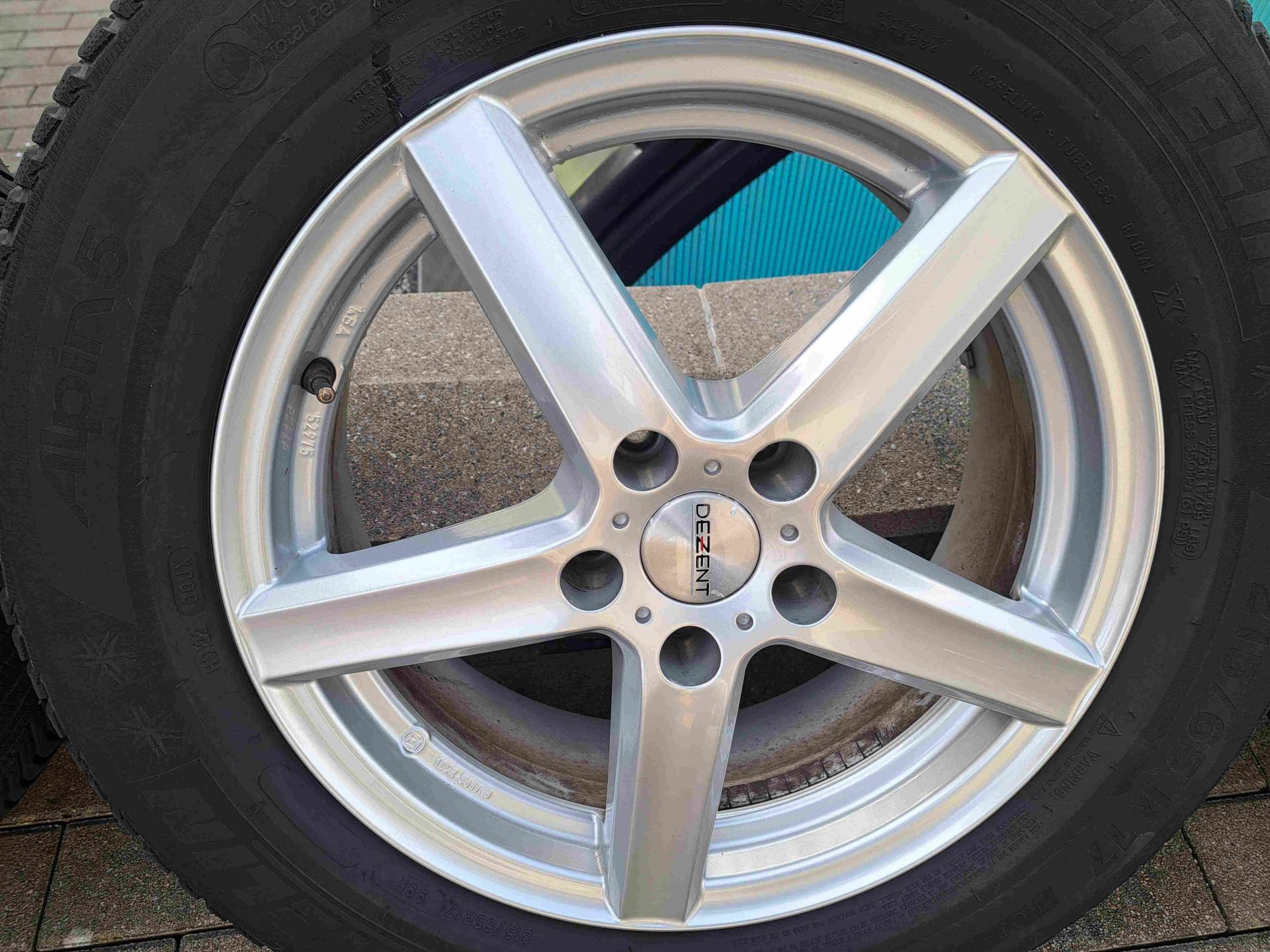 17ALU DEZENT 5x112 6,5J 17H2 ET38 + 4x 215-65-17 99H MICHELIN Alpin5 (3521) (pneu 6+6+3+2 mm)
