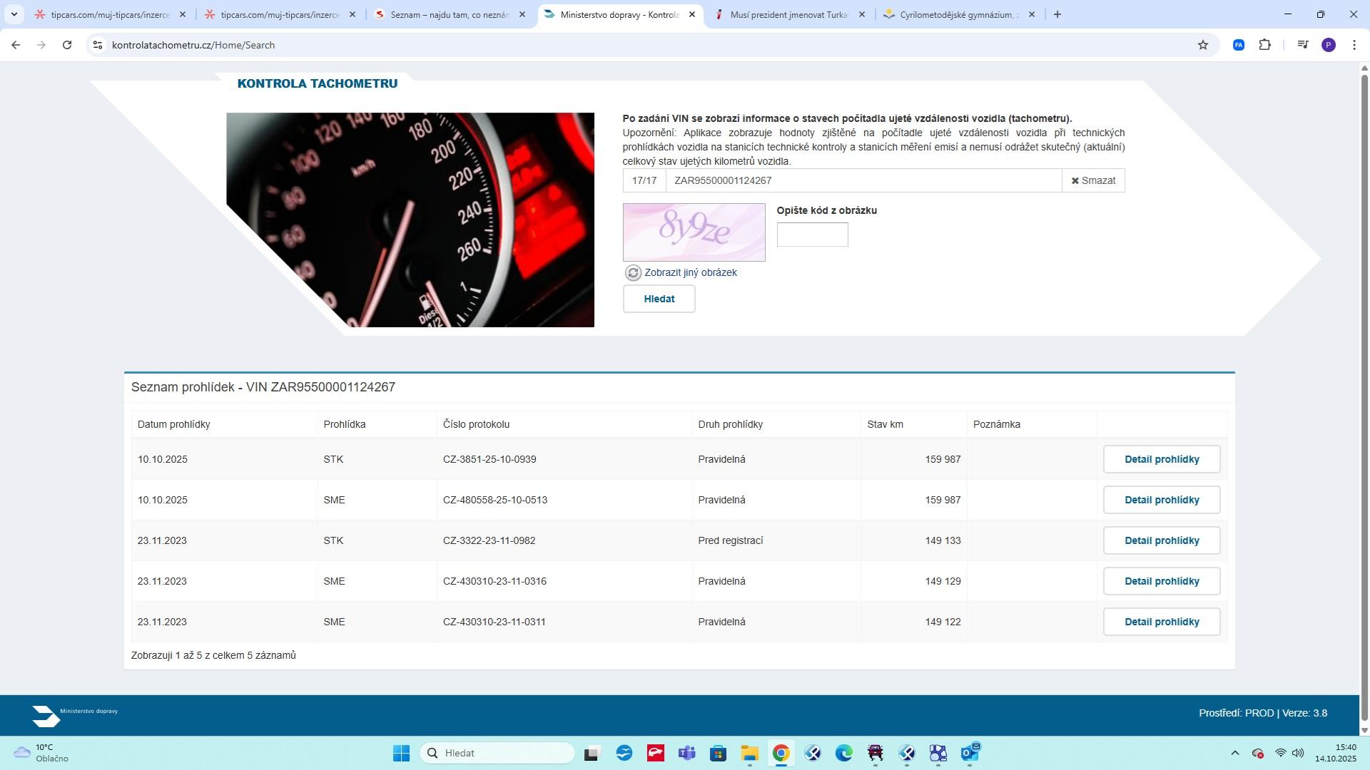 | Historie | Zobrazit historii vozu |